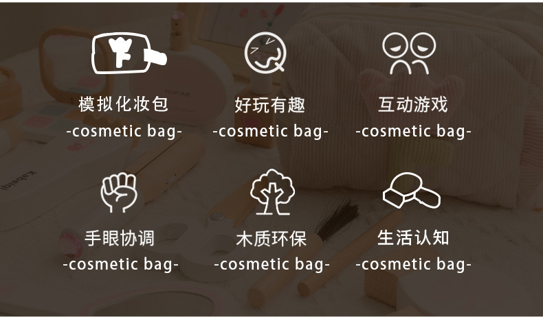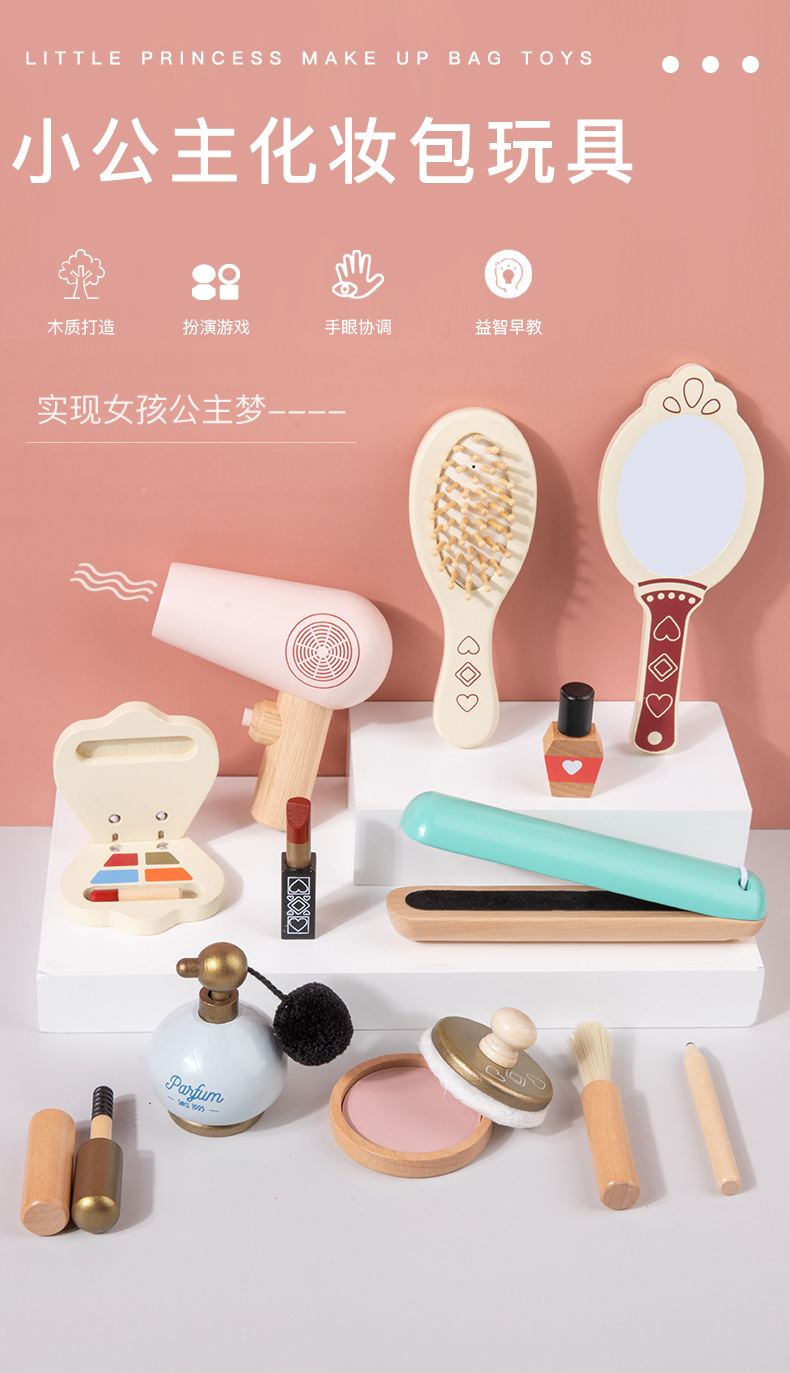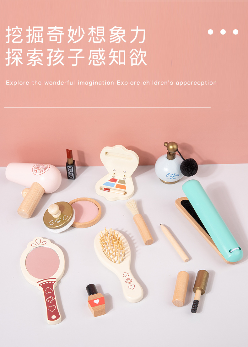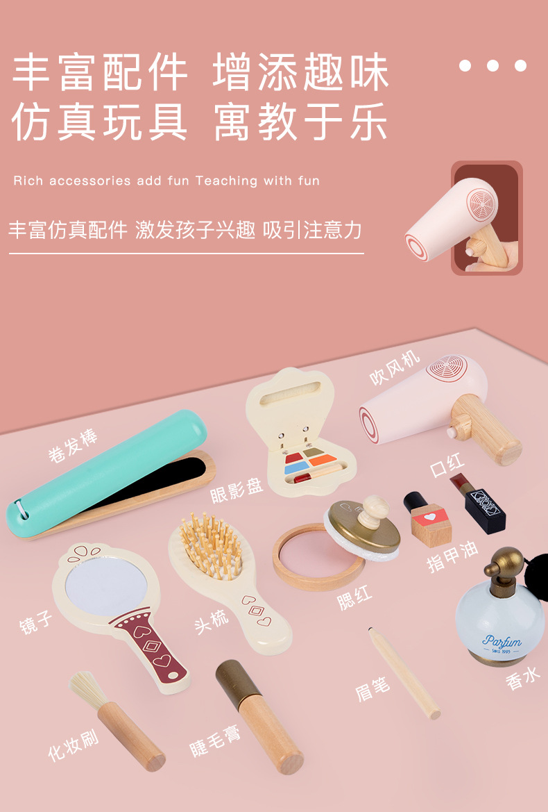 跨境儿童木制过家家梳妆台公主化妆包套装女孩仿真化妆品玩具批发