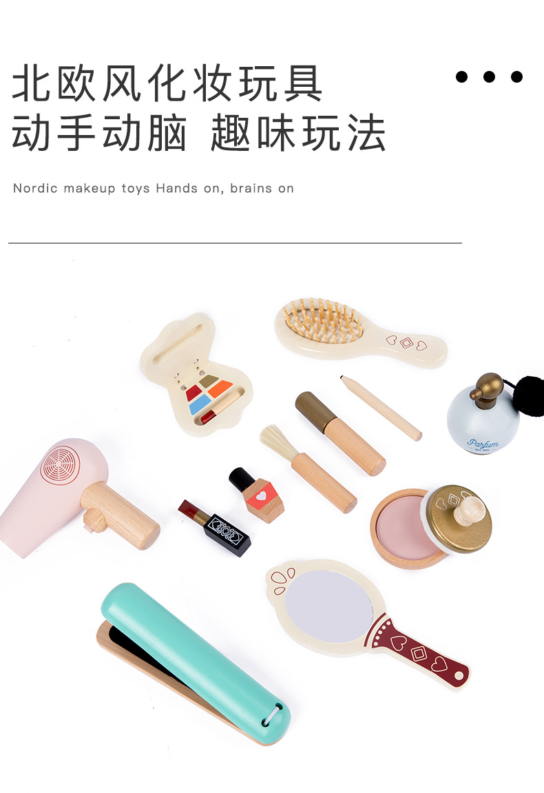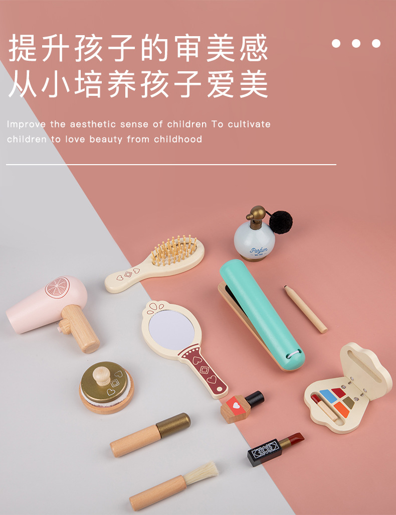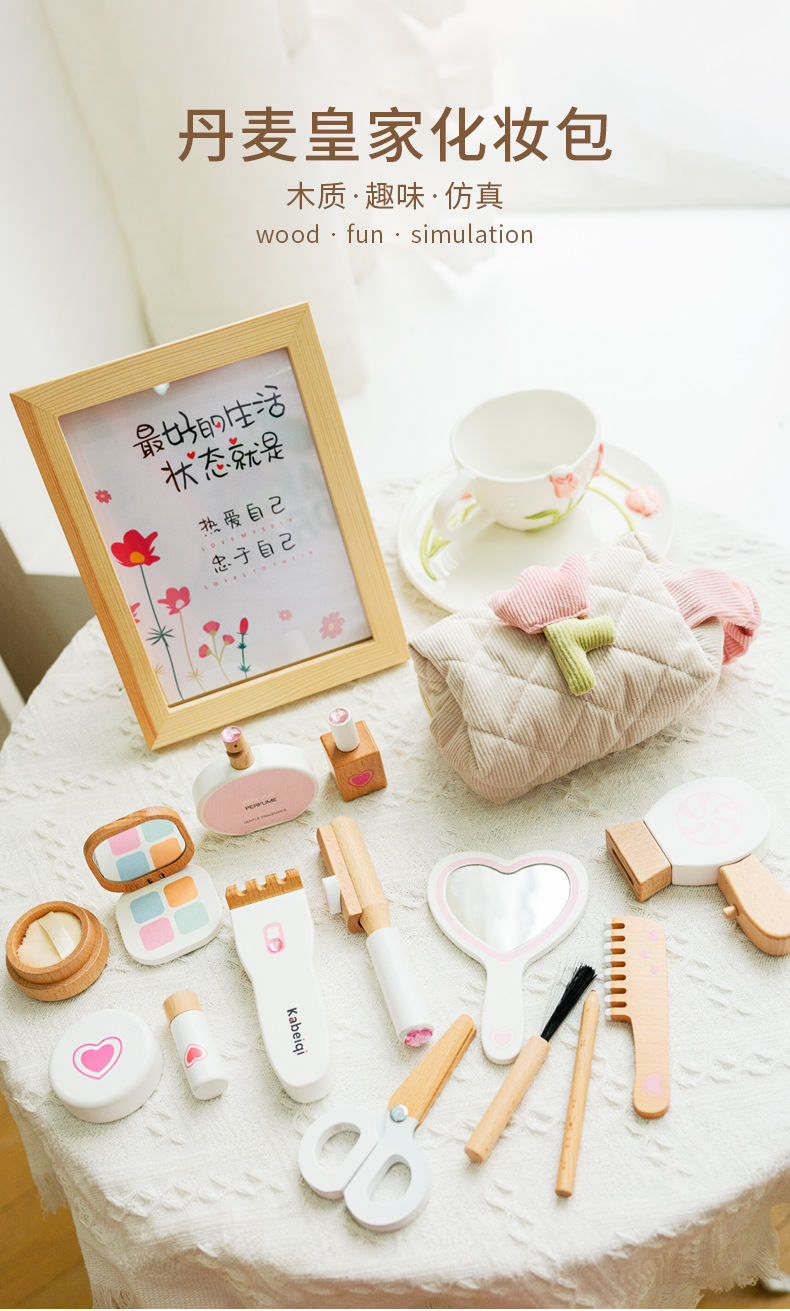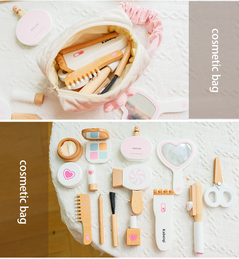 跨境儿童木制过家家梳妆台公主化妆包套装女孩仿真化妆品玩具批发