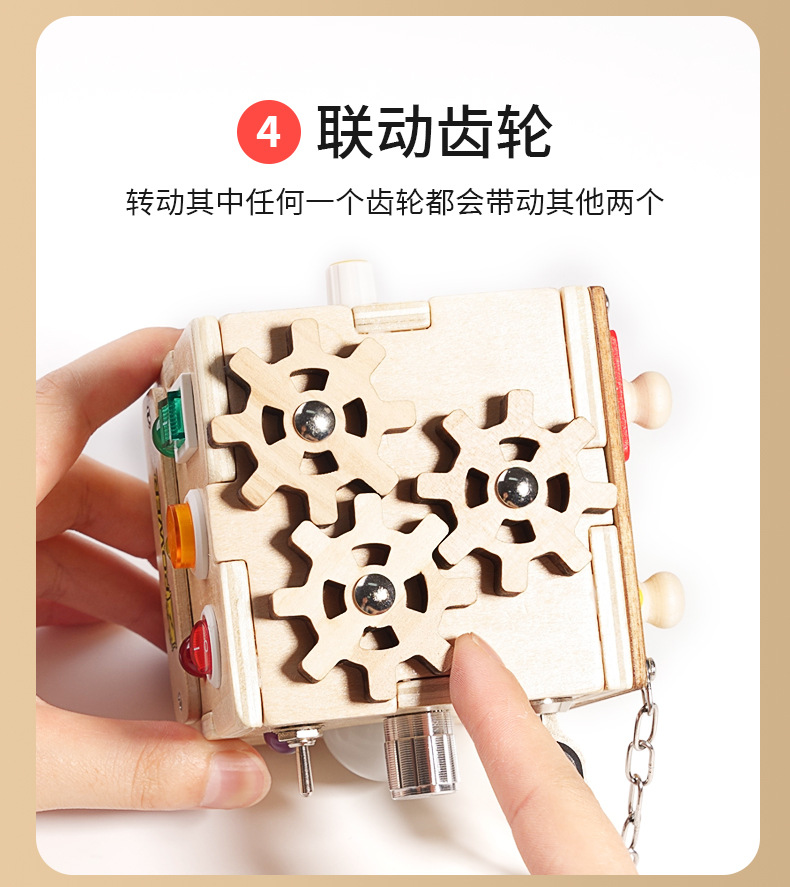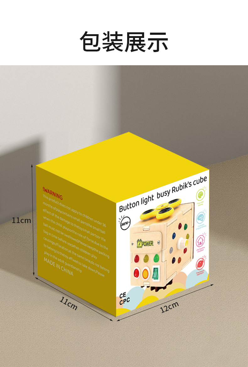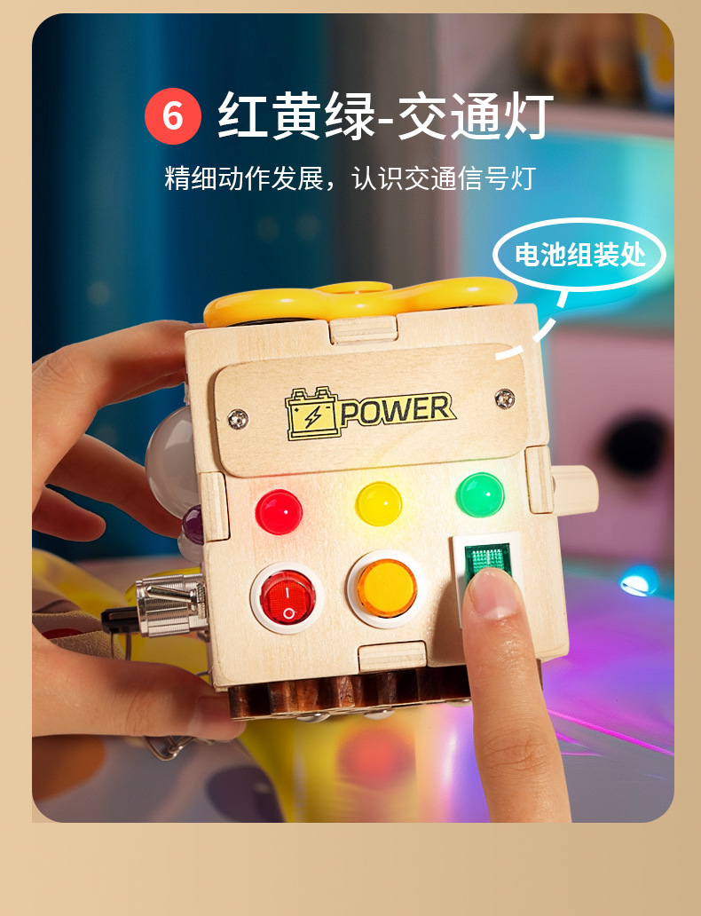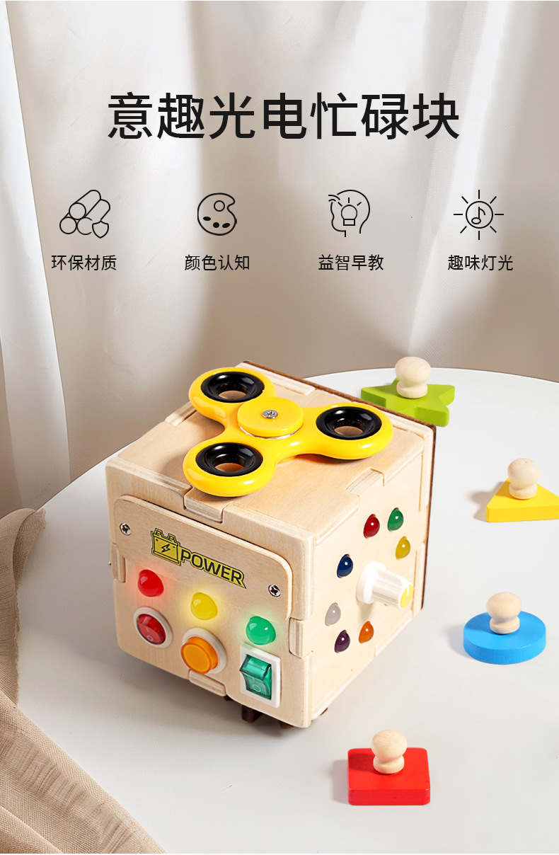 跨境亚马逊木质六面体LED电子开关灯儿童蒙氏早教忙碌板益智玩具