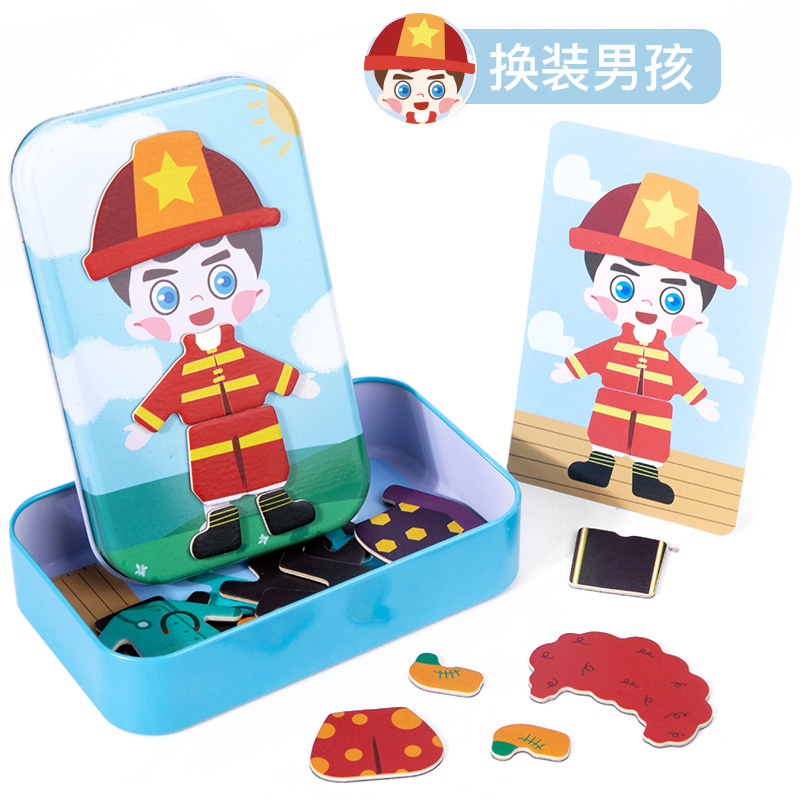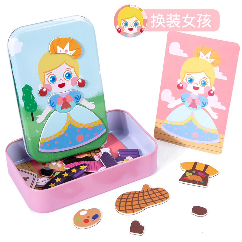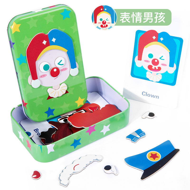 新款磁性铁盒换装表情拼图儿童2-3岁男孩女孩磁性贴早教 益智玩具