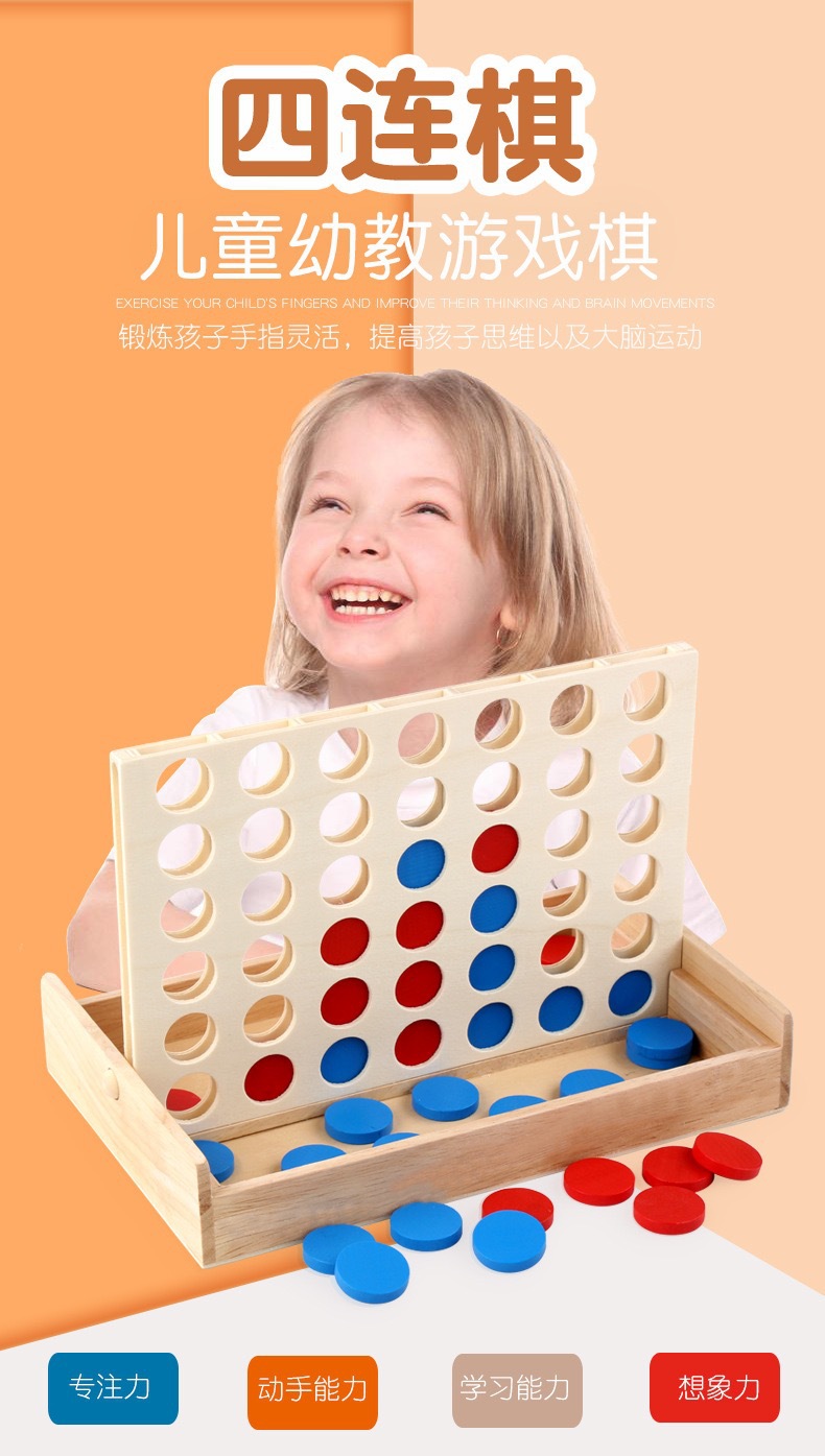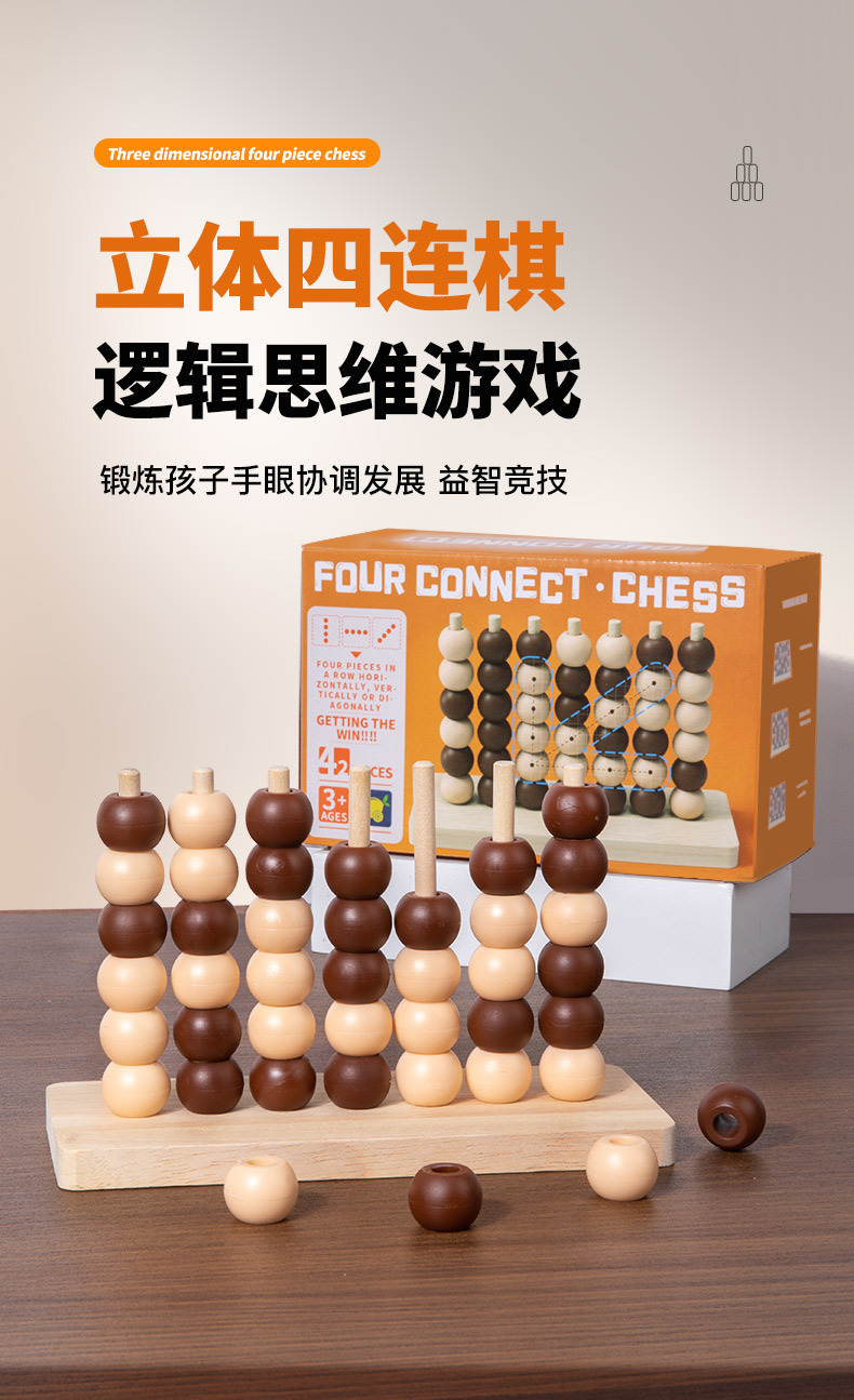 立体四连棋四子游戏棋儿童益智早教逻辑思维互动桌面游戏木质玩具