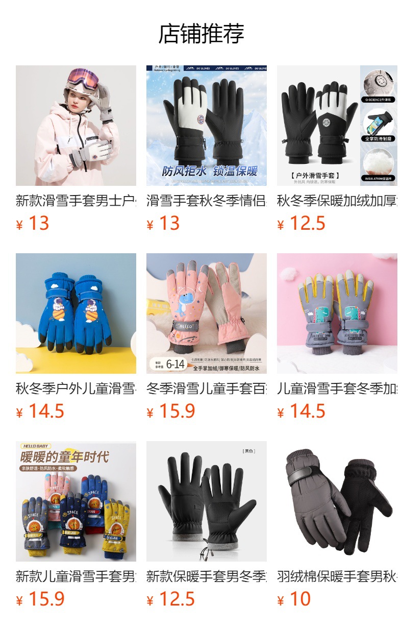 冬季新品滑雪手套男女士户外骑行可触屏保暖加绒加厚手套防水防滑
