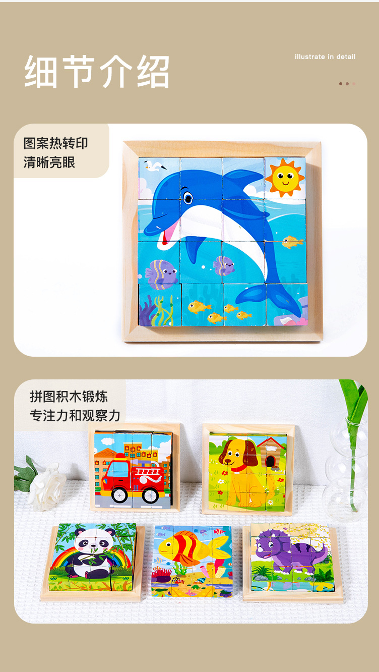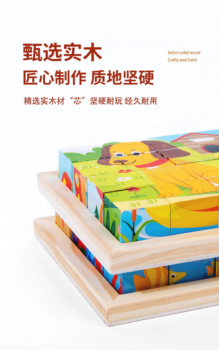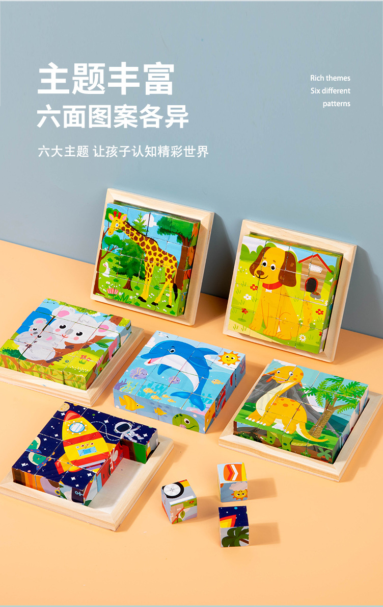 六面体积木3d立体拼图方块婴儿童幼儿园宝宝早教益智玩具木质拼图
