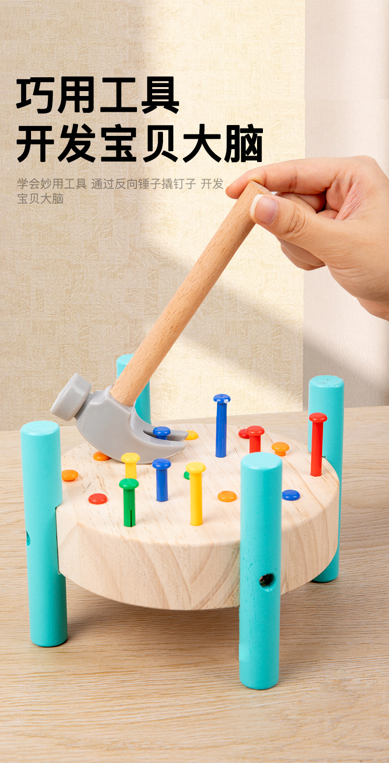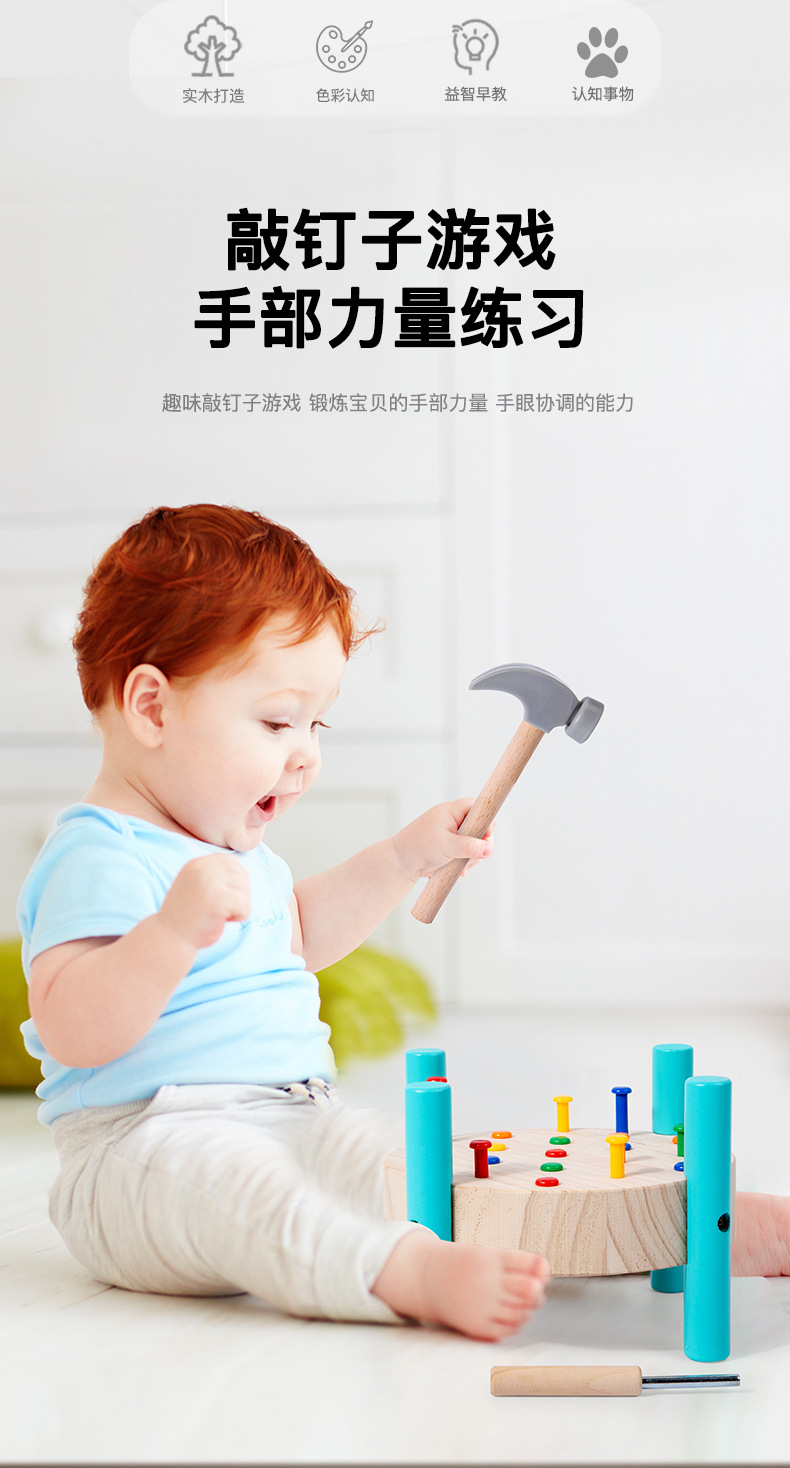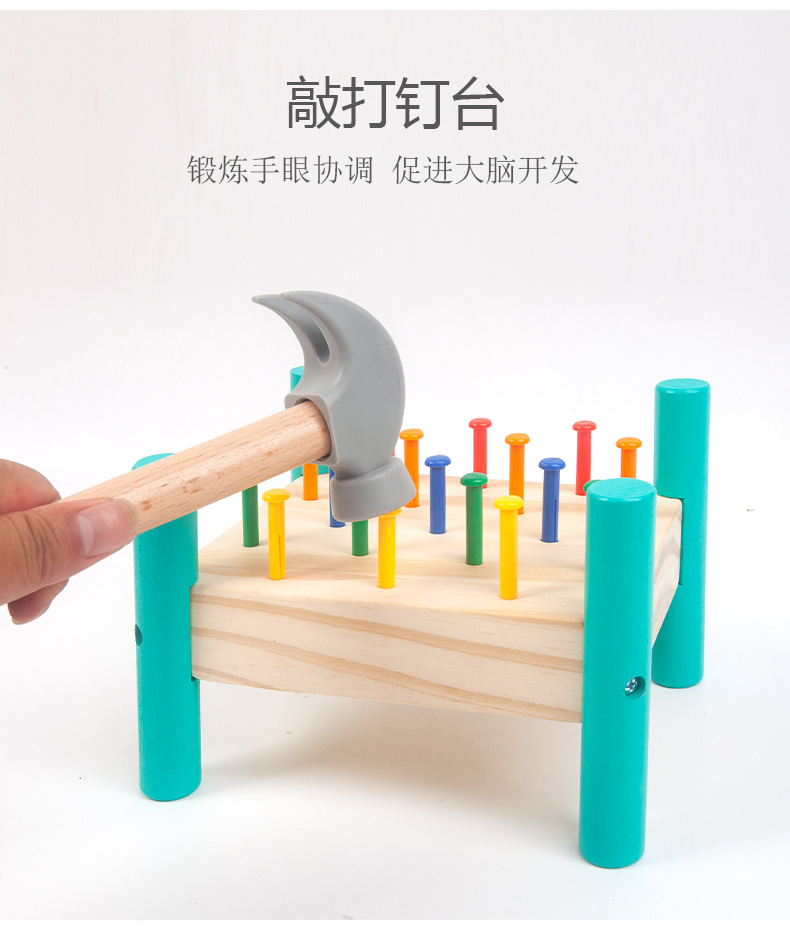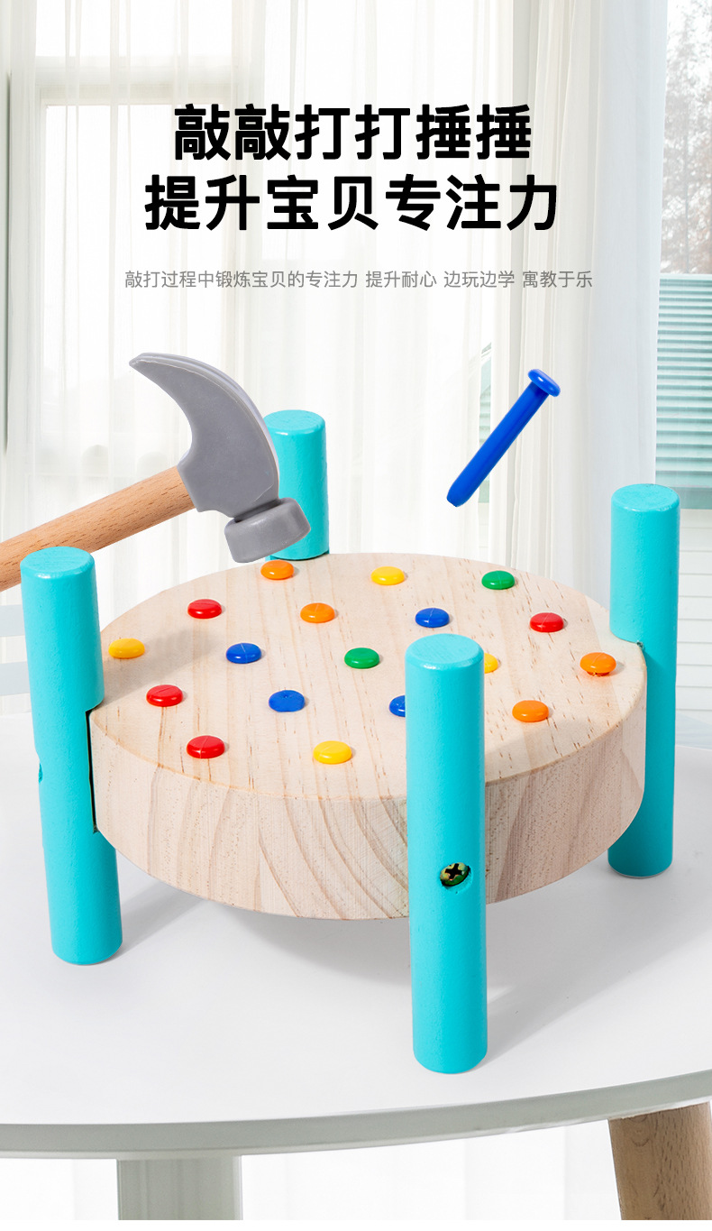 儿童木制蒙氏早教敲钉台手眼协调专注力训练幼儿园敲打台益智玩具