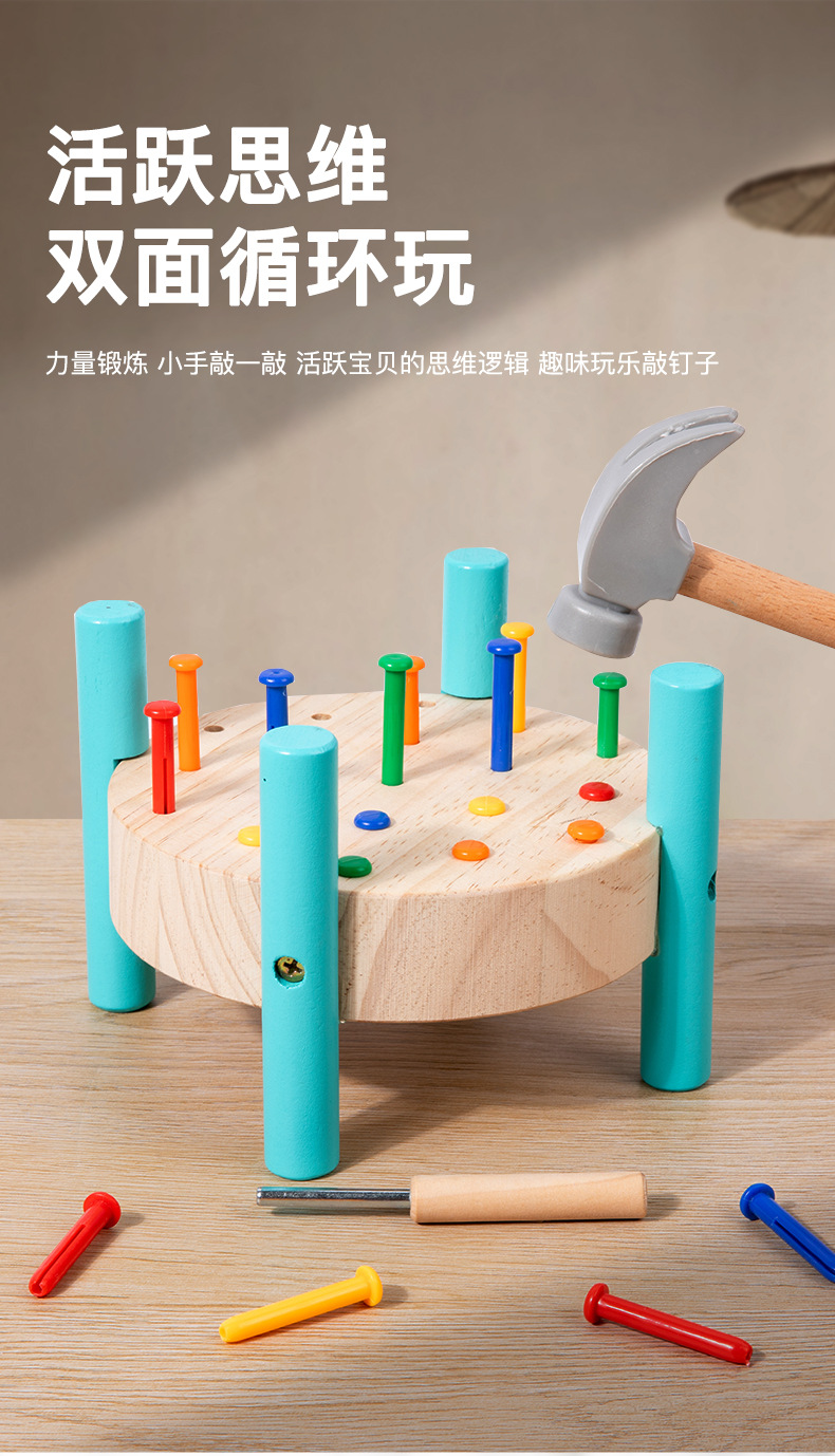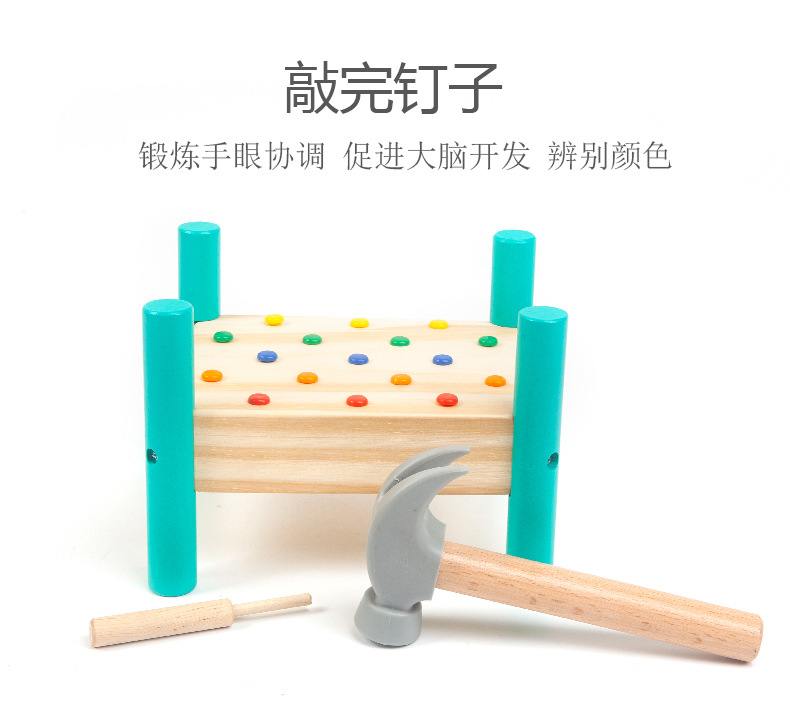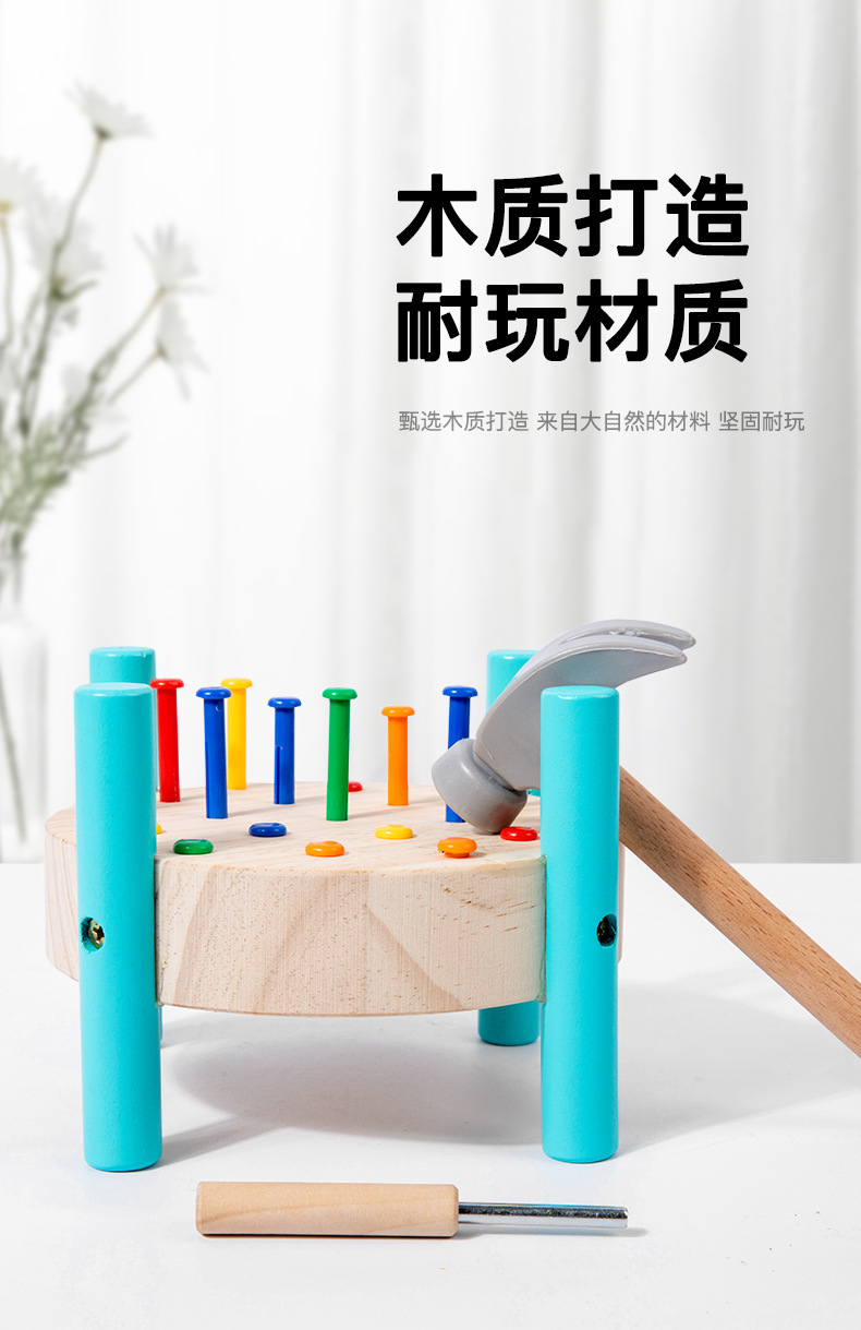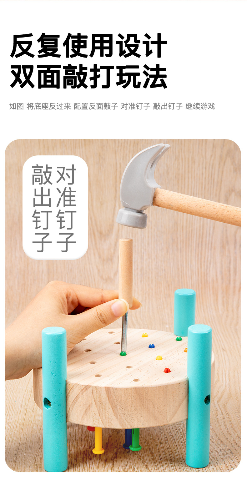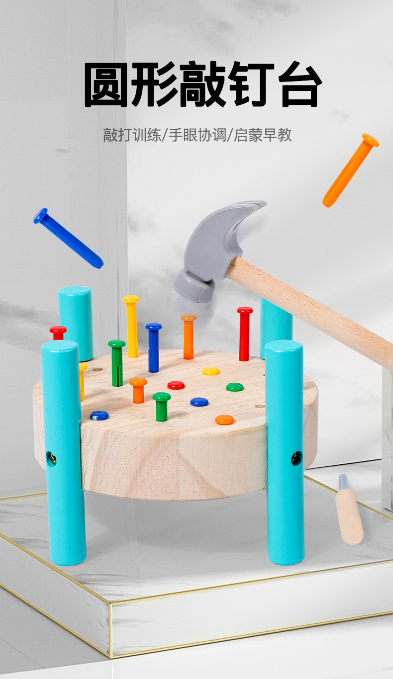 儿童木制蒙氏早教敲钉台手眼协调专注力训练幼儿园敲打台益智玩具