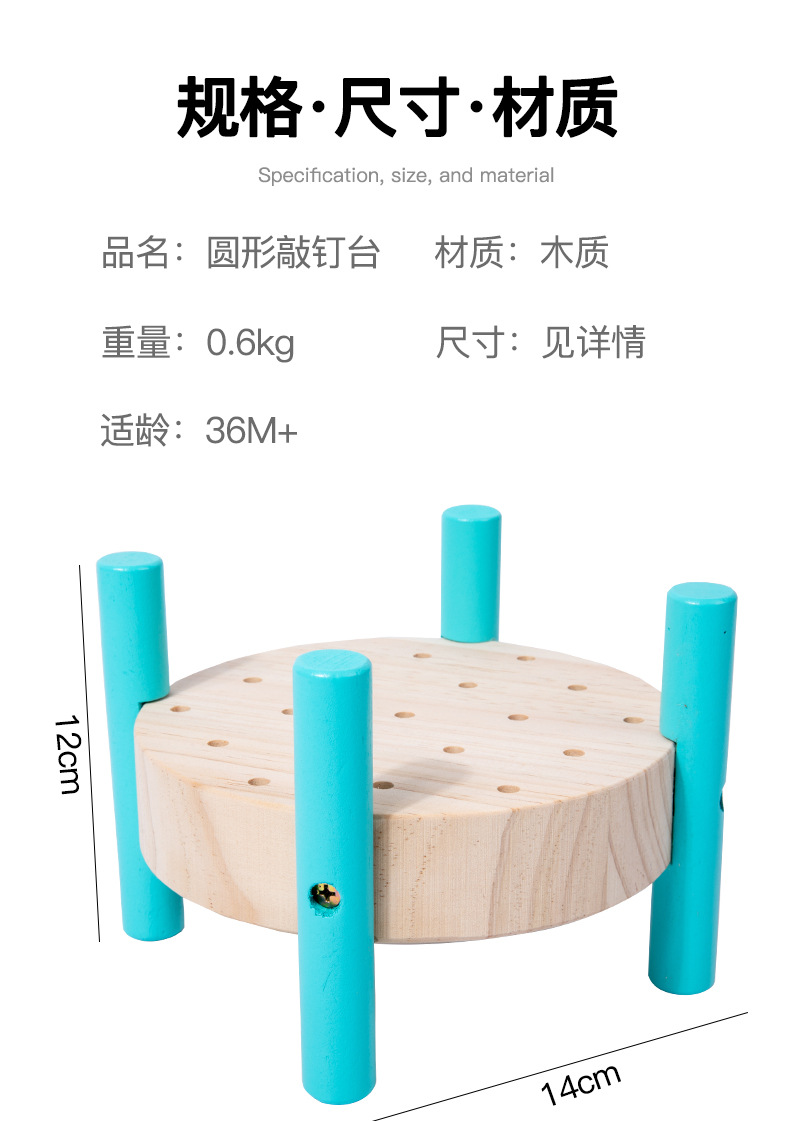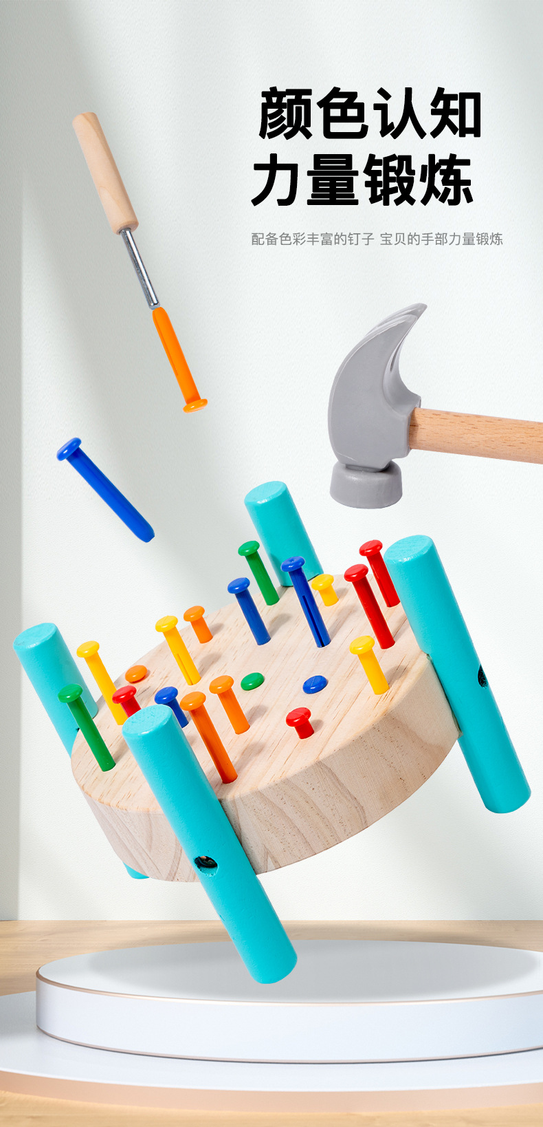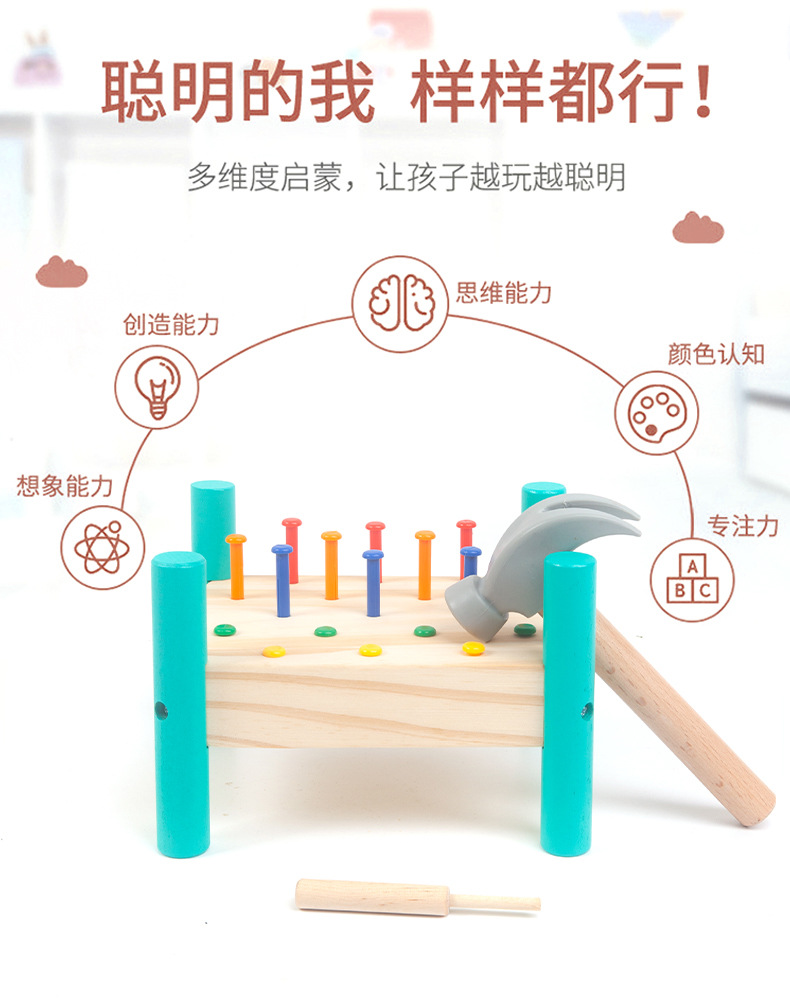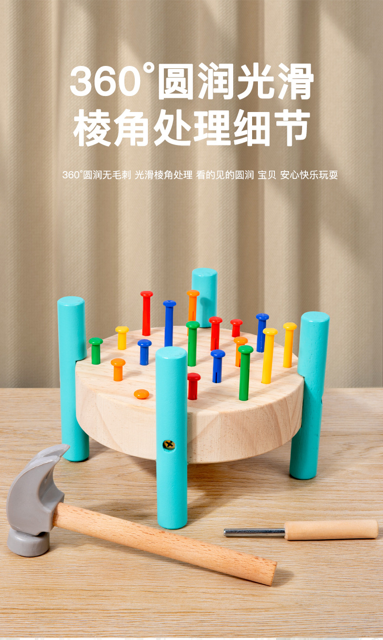 儿童木制蒙氏早教敲钉台手眼协调专注力训练幼儿园敲打台益智玩具