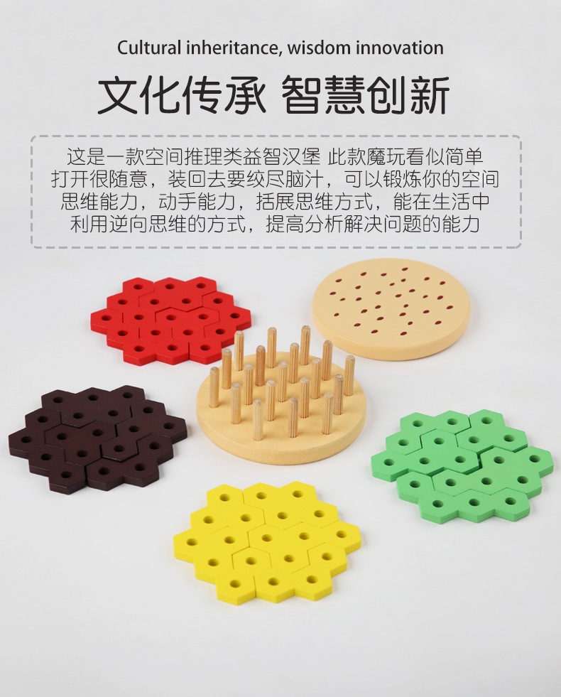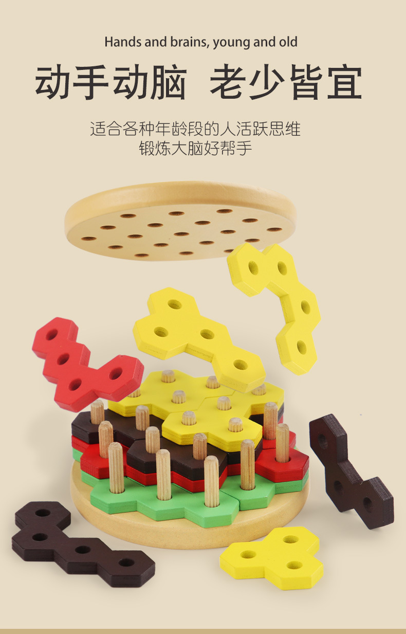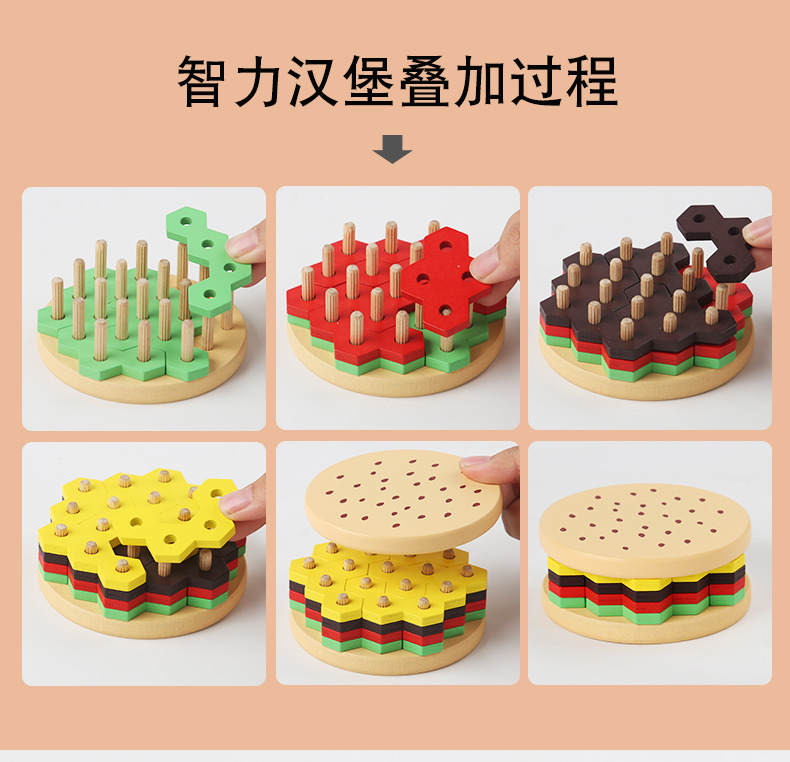 儿童木质智力汉堡套柱益智积木拼图空间逻辑思维训练早教启蒙玩具