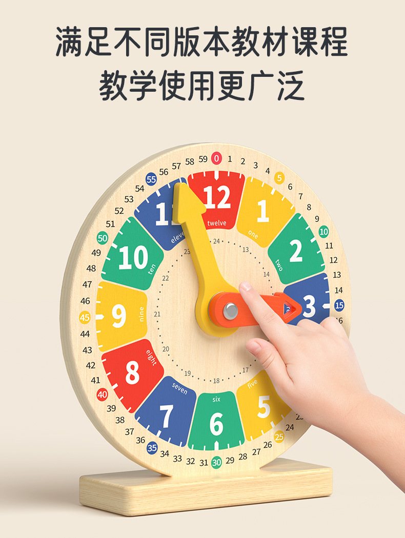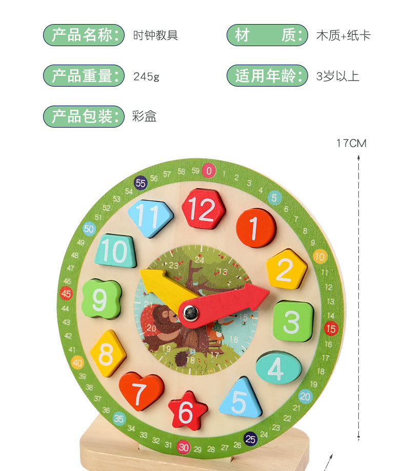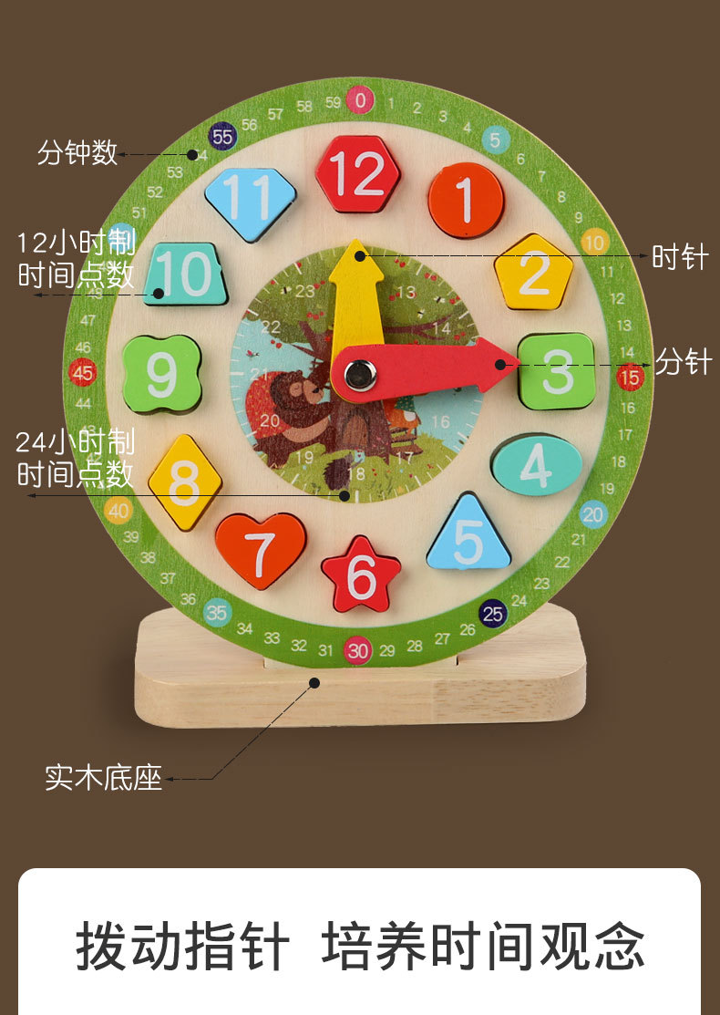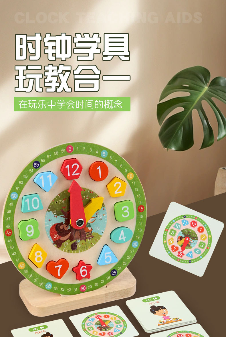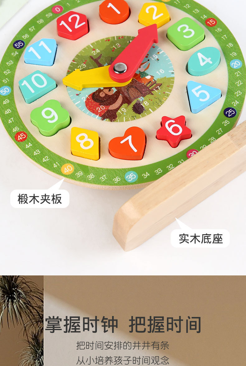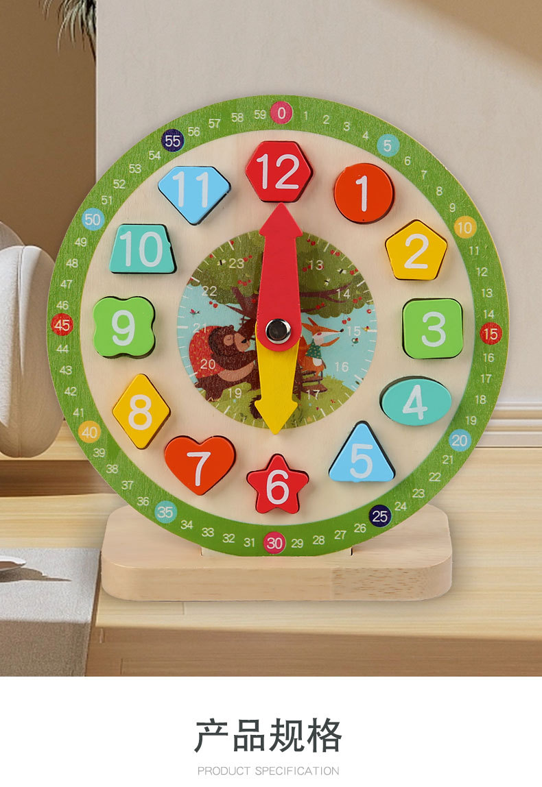 儿童木质数字时钟教具钟表模型早教智力开发学习时间闹钟益智玩具