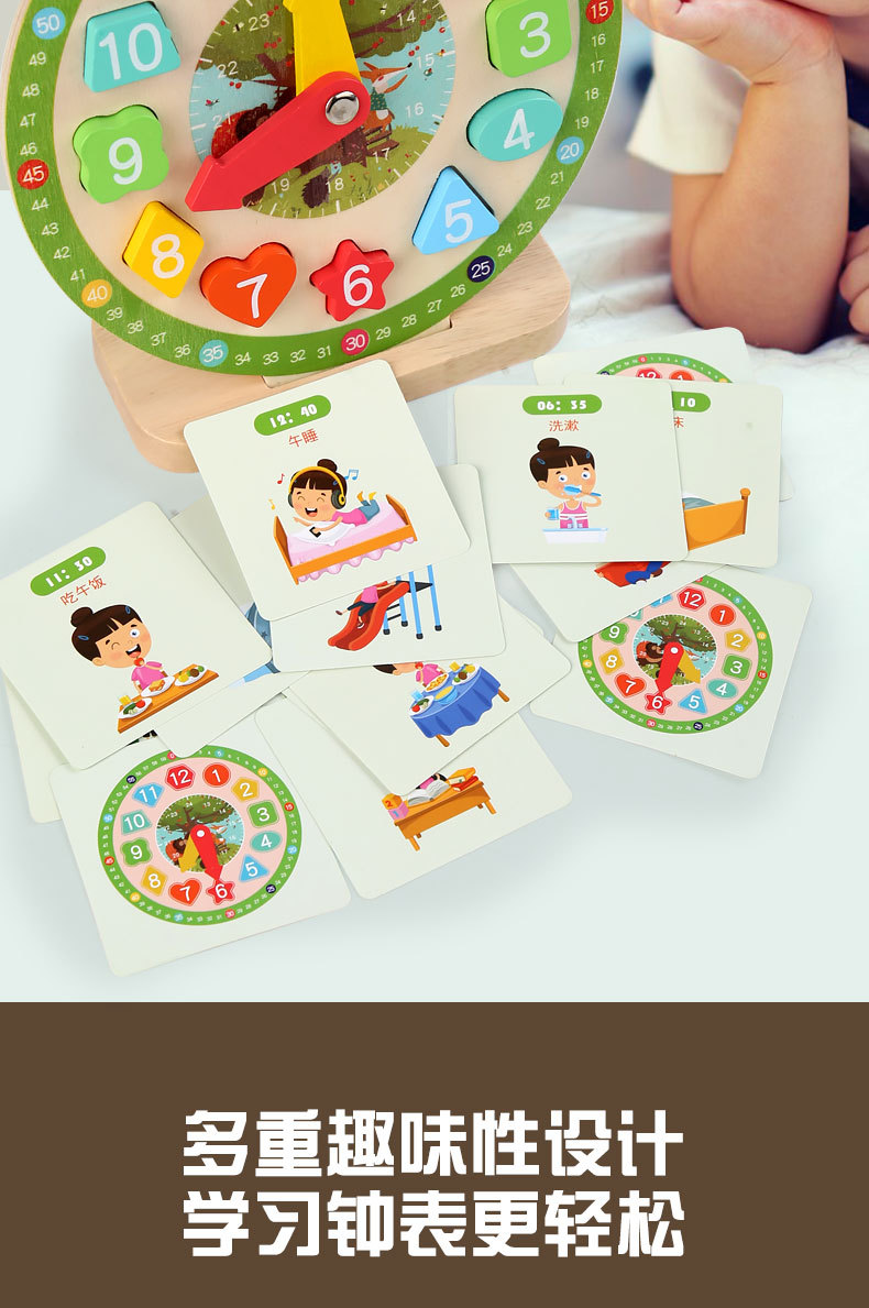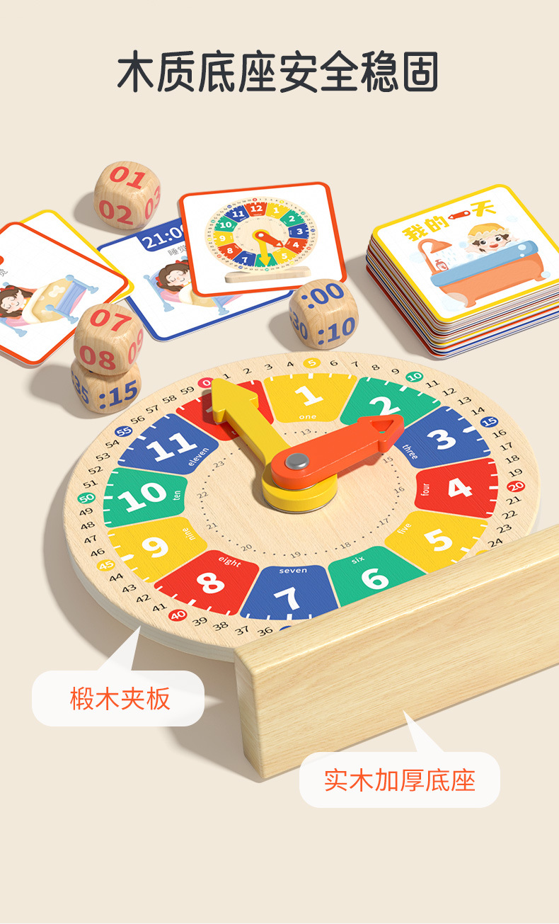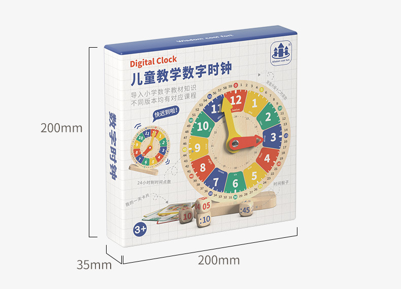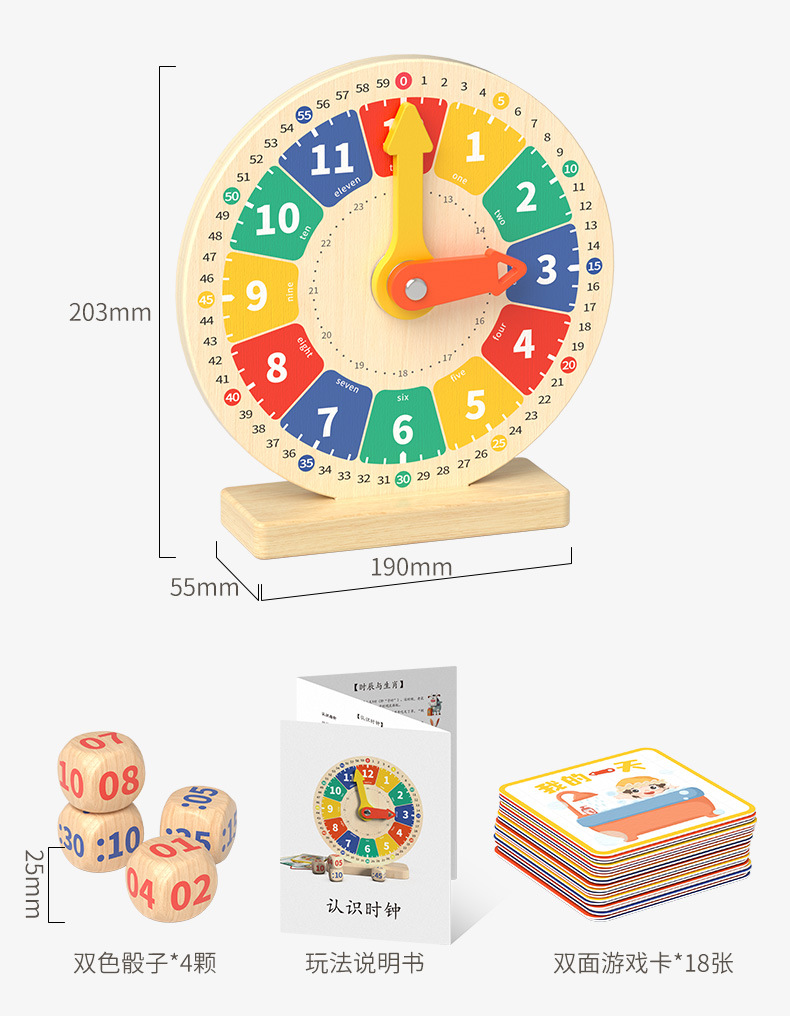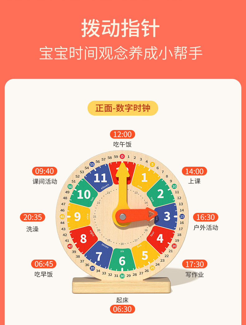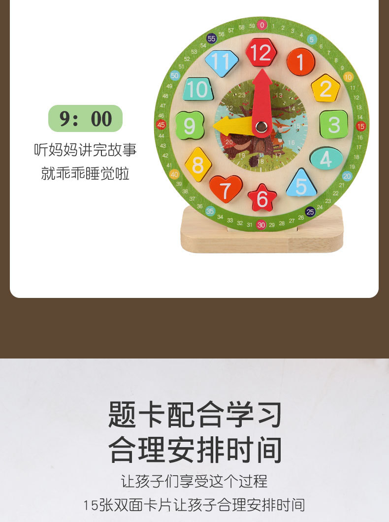 儿童木质数字时钟教具钟表模型早教智力开发学习时间闹钟益智玩具
