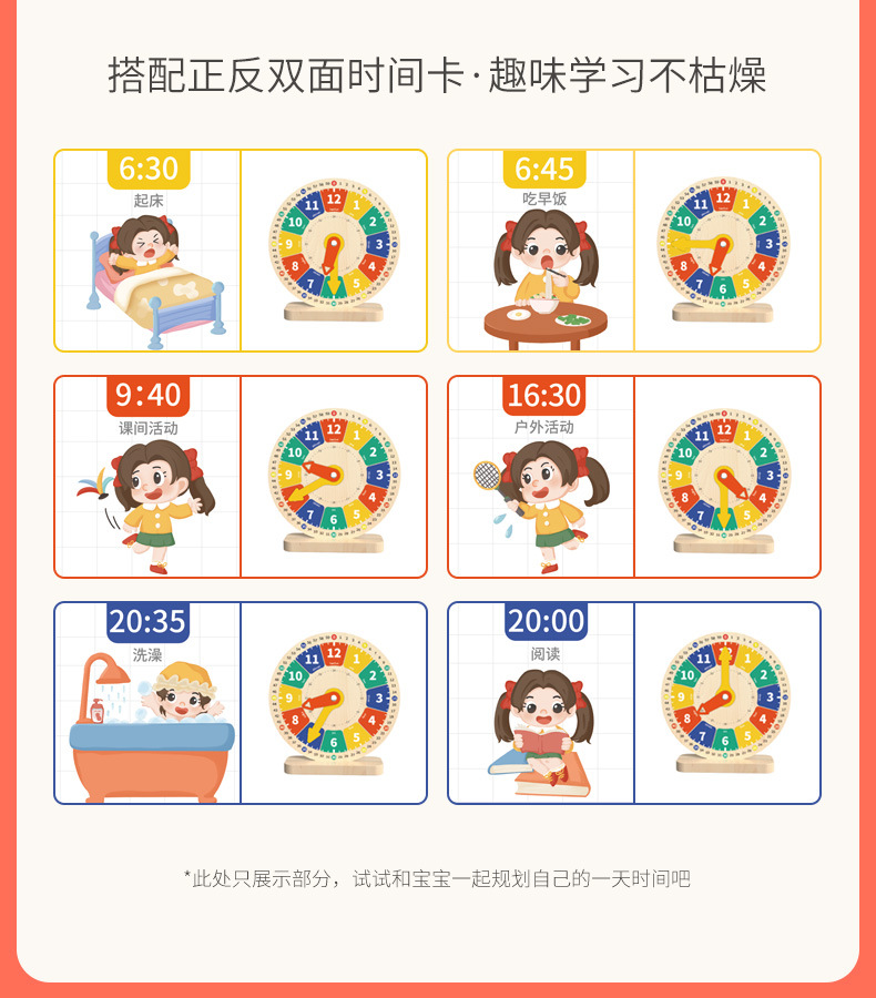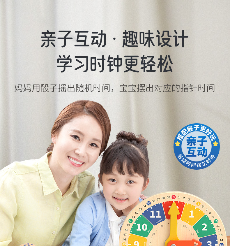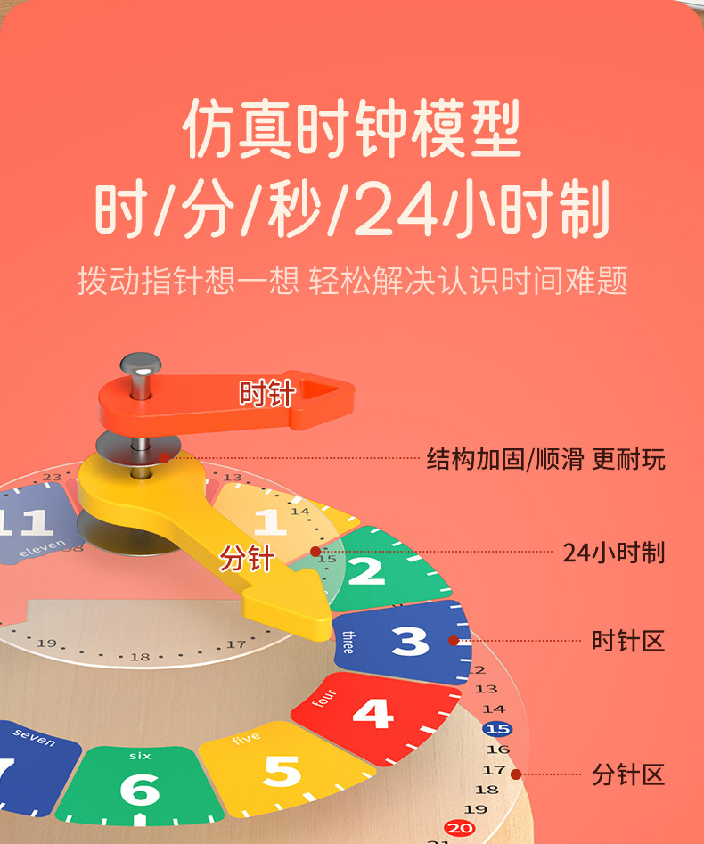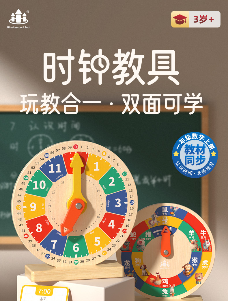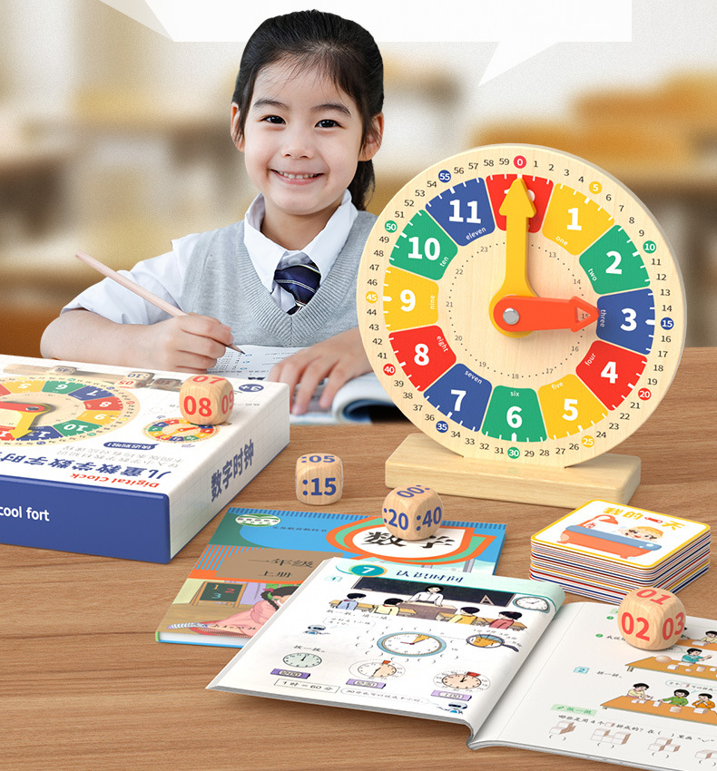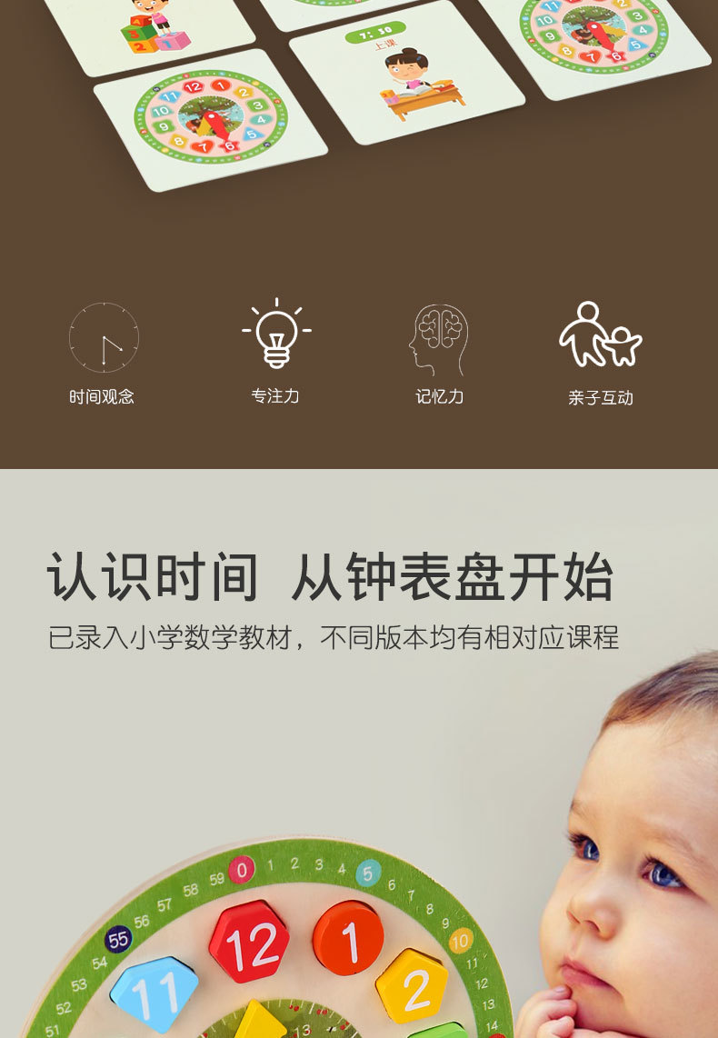 儿童木质数字时钟教具钟表模型早教智力开发学习时间闹钟益智玩具