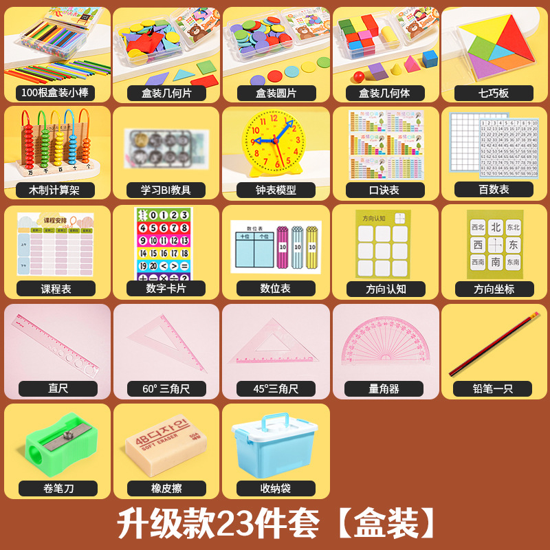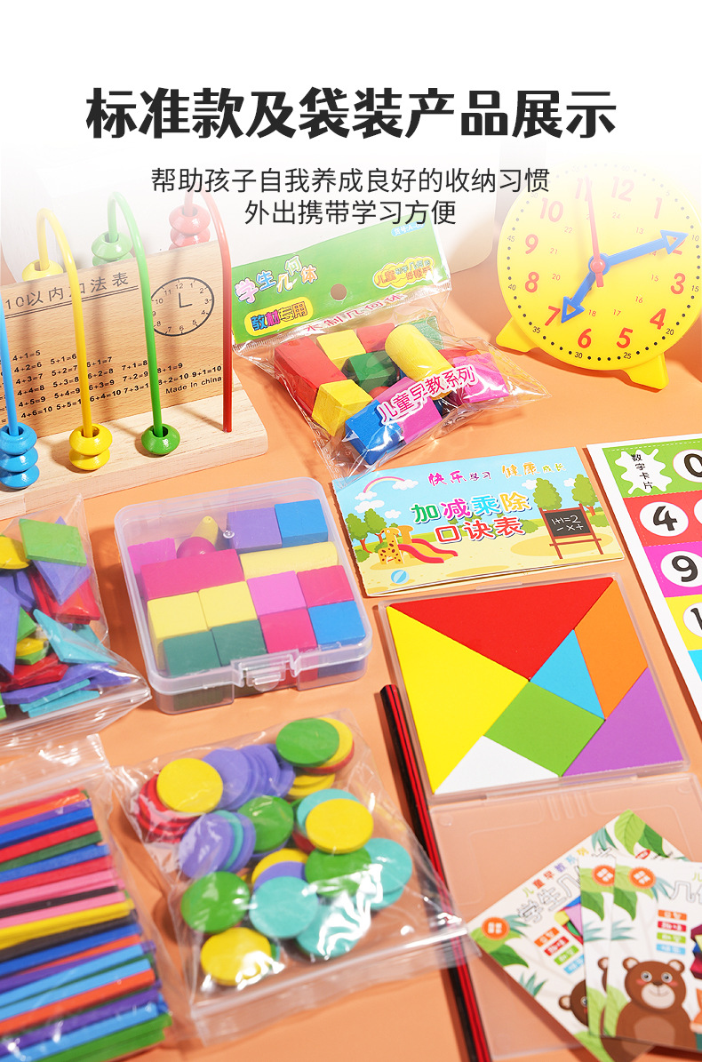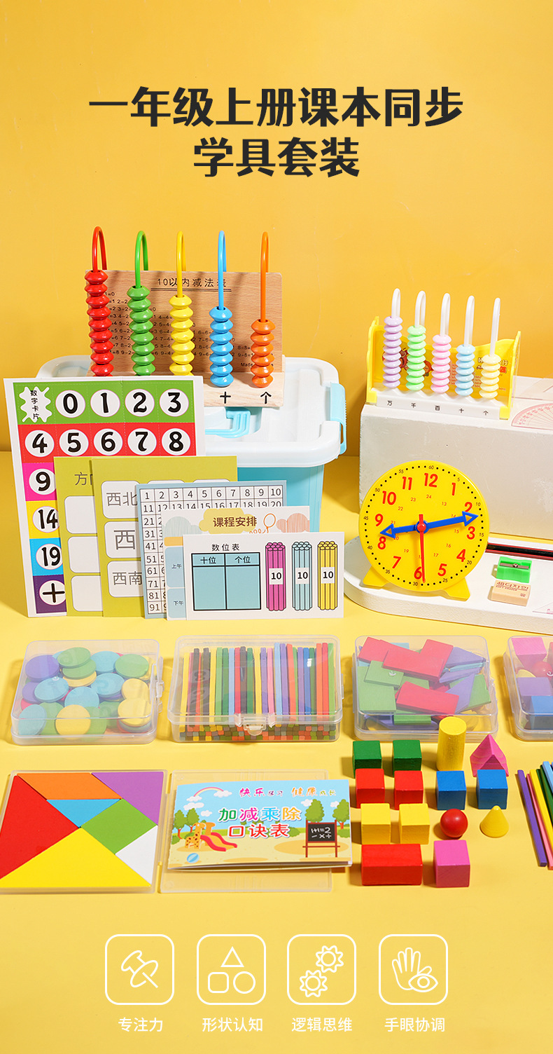 数学教具套装小学生一二年级计数器时钟几何体图形数数棒学具批发