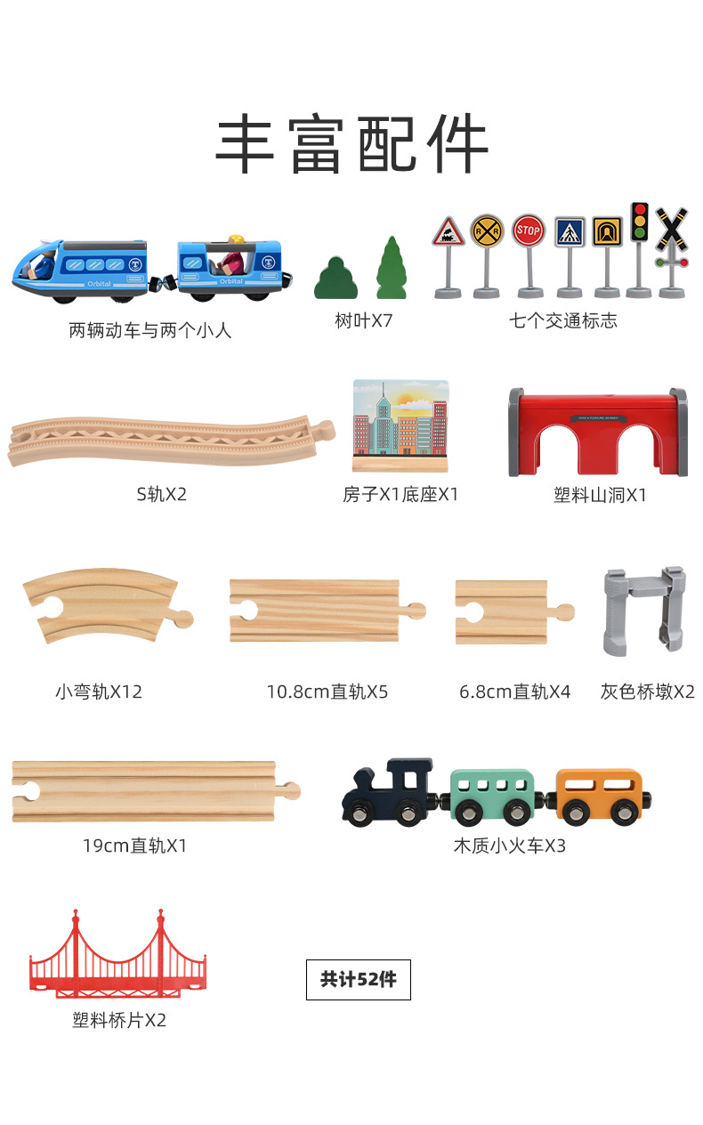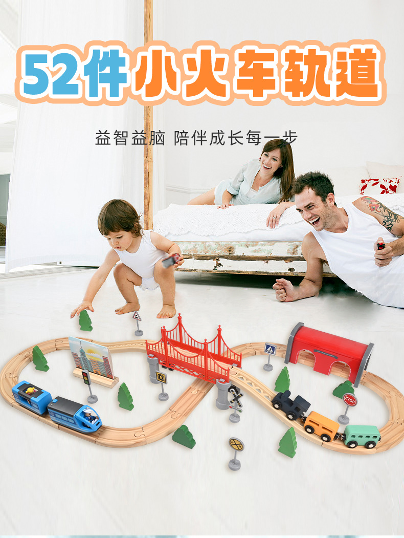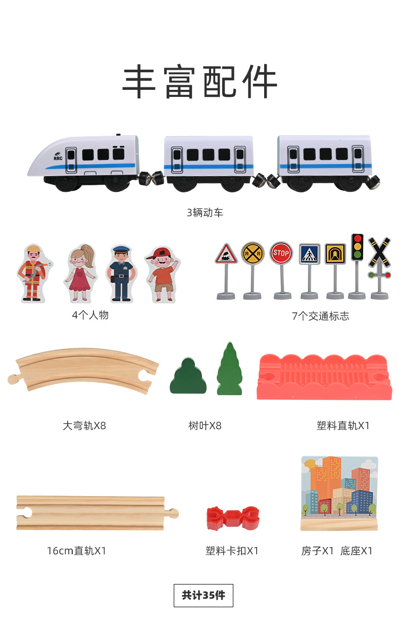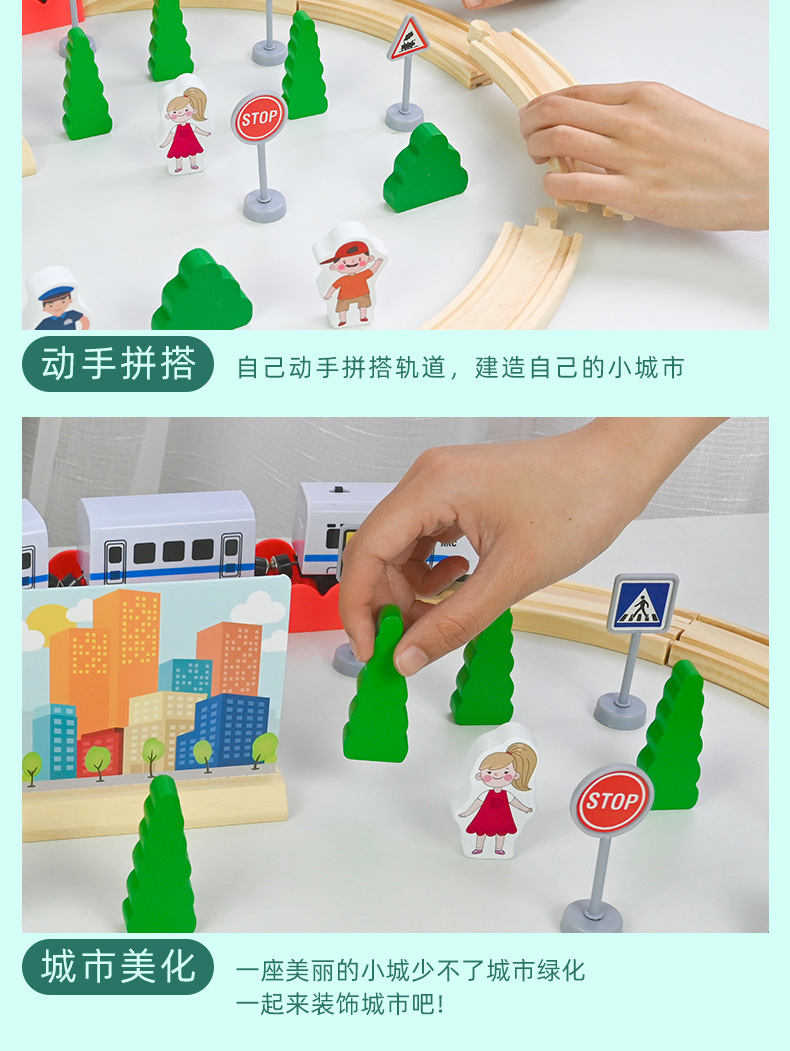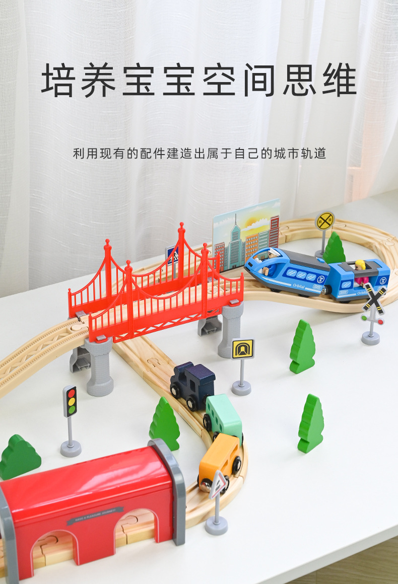 儿童电动火车轨道车玩具磁性小火车轨道城市交通拼装木质玩具批发