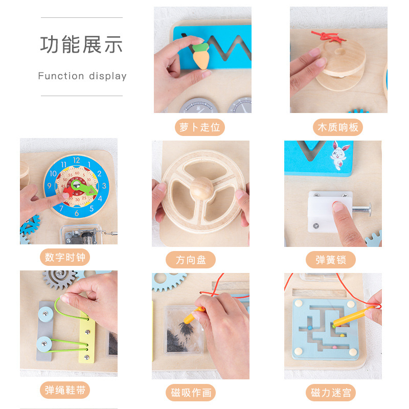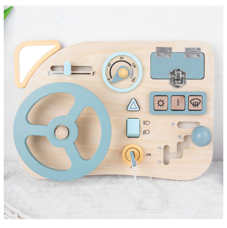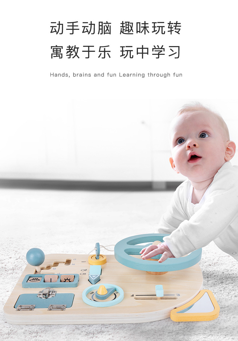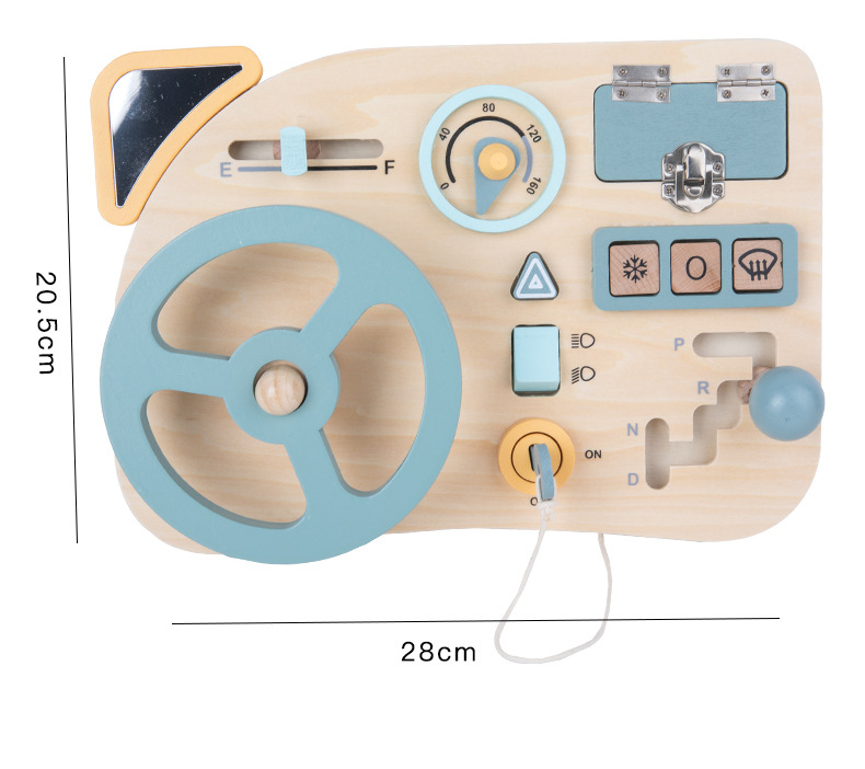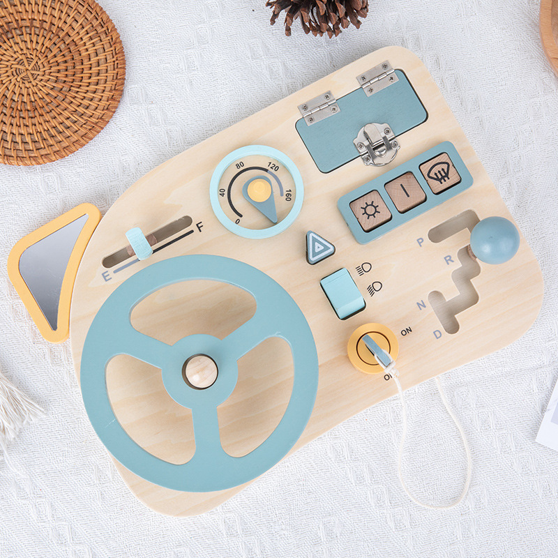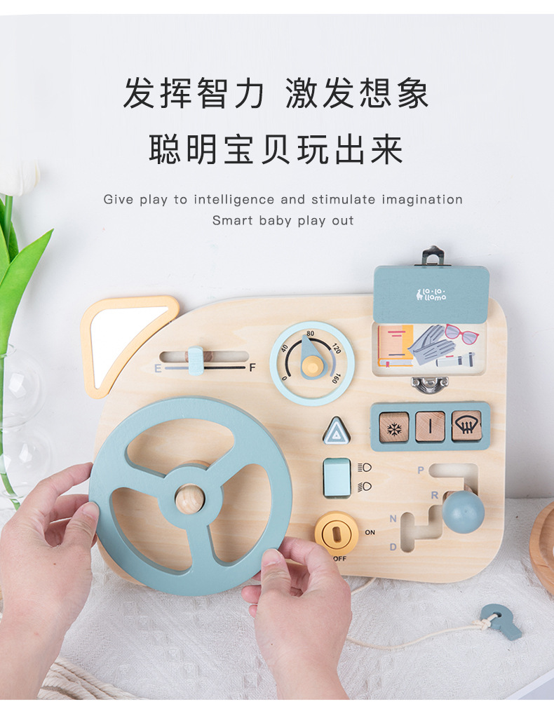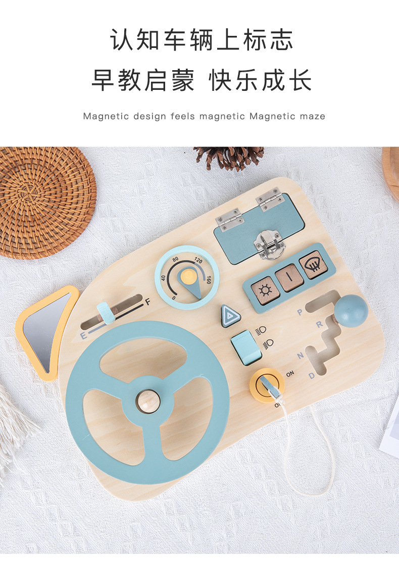 儿童早教木质忙碌板蒙特梭利蒙氏教具趣味模拟驾驶方向盘益智玩具