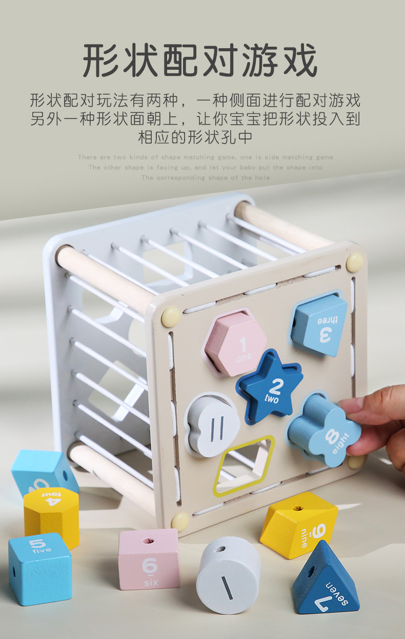 木质塞塞乐婴儿手部精细动作玩具宝宝益智魔方六面体早教形状配对
