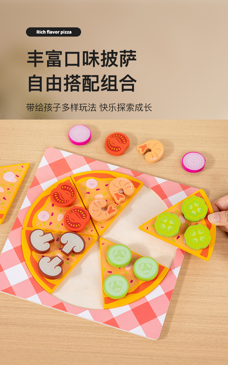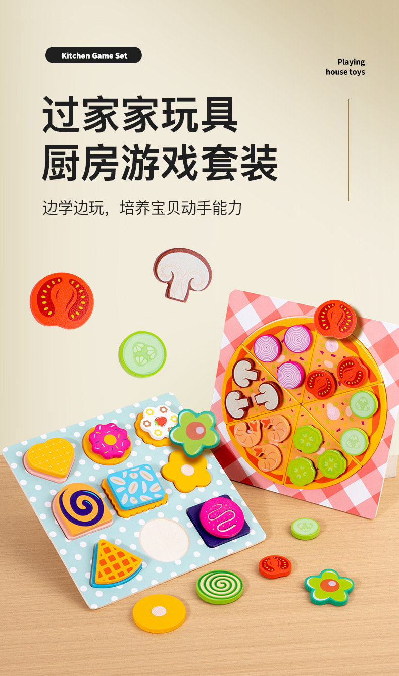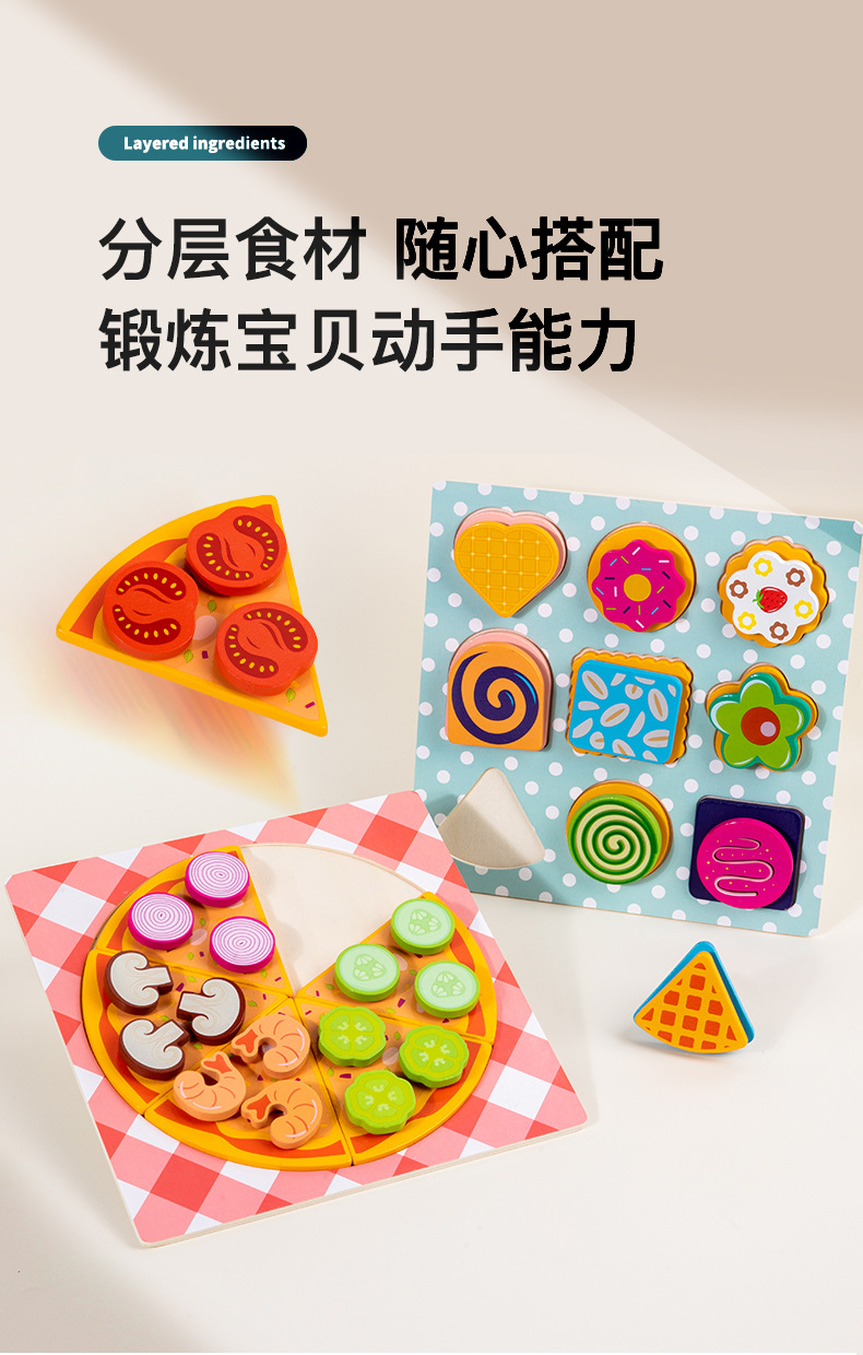 儿童木质仿真披萨曲奇饼干配对拼图粘粘乐厨房过家家早教益智玩具