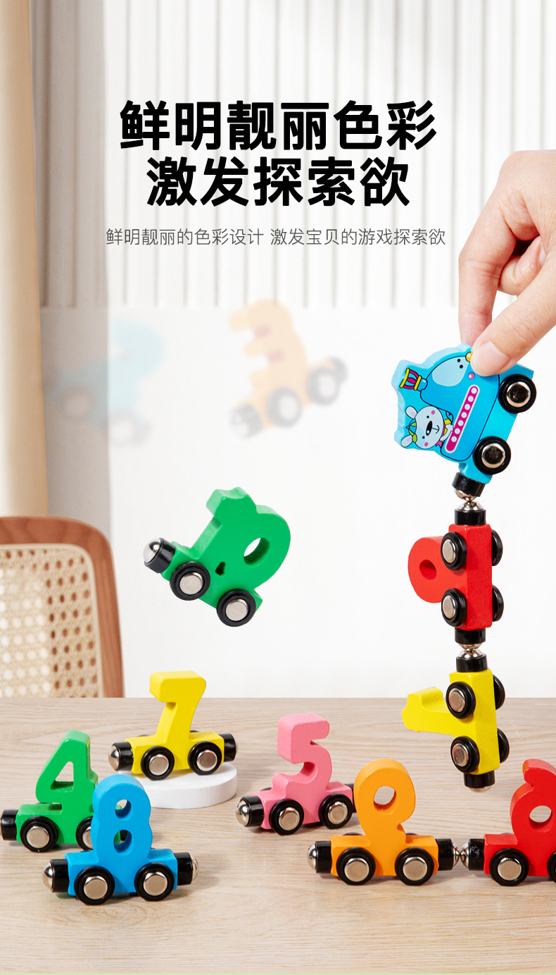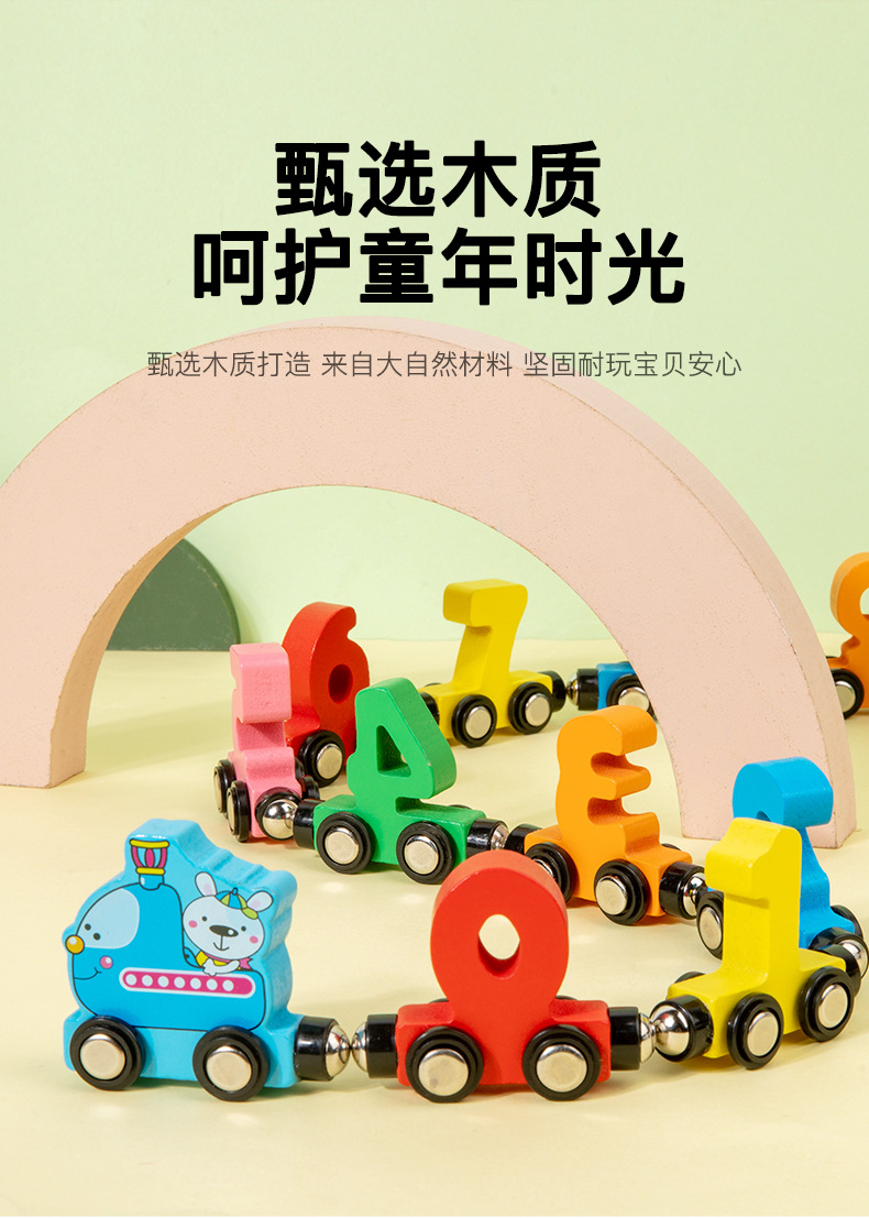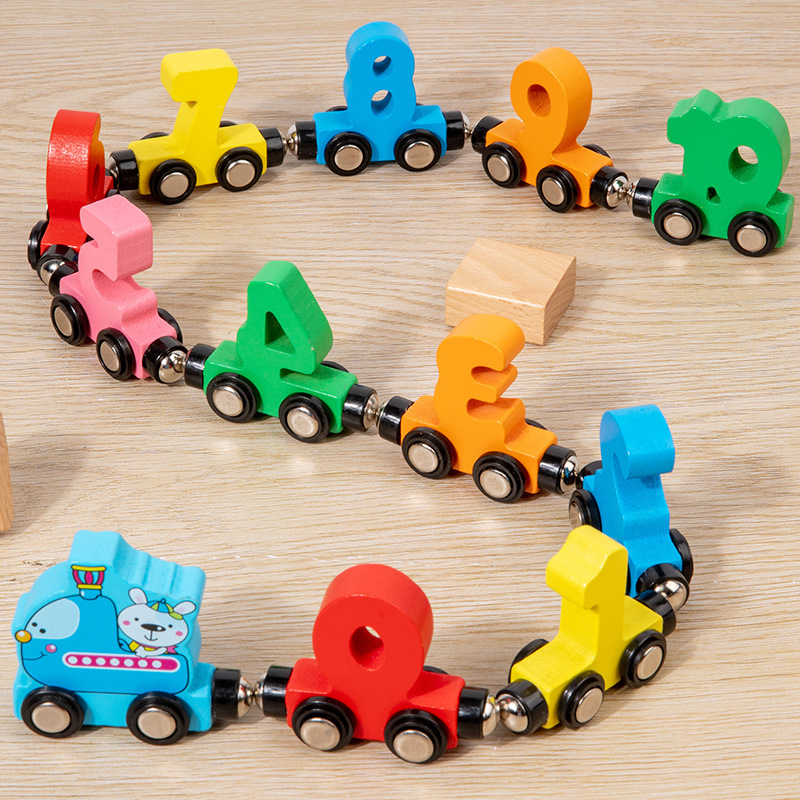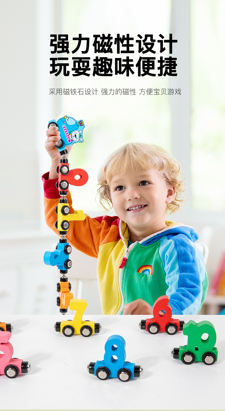 工厂定制儿童木质磁性数字小火车积木拼装车宝宝启蒙早教益智玩具