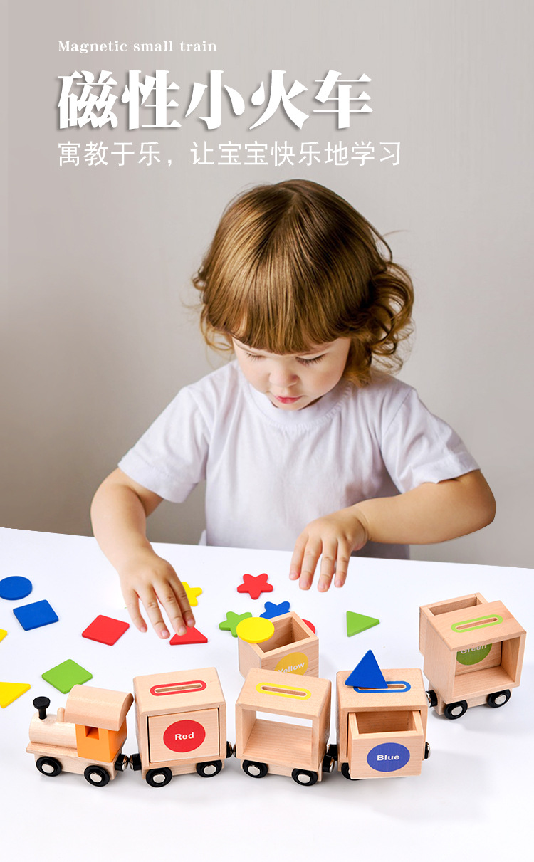 跨境儿童木制磁性小火车颜色形状分类蒙氏早教益智力开发认知玩具