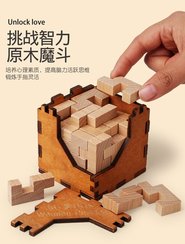 魔斗拼装积木孔明锁鲁班锁儿童成人解压烧脑益智魔盒拼图木制玩具