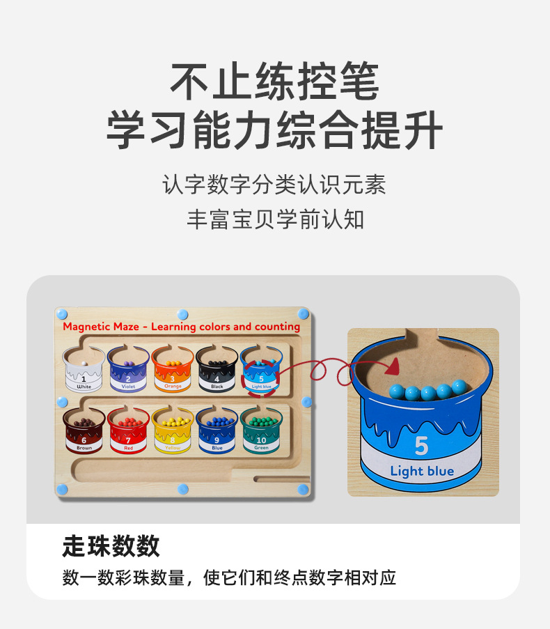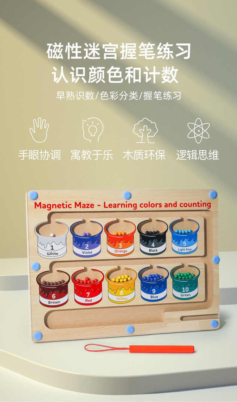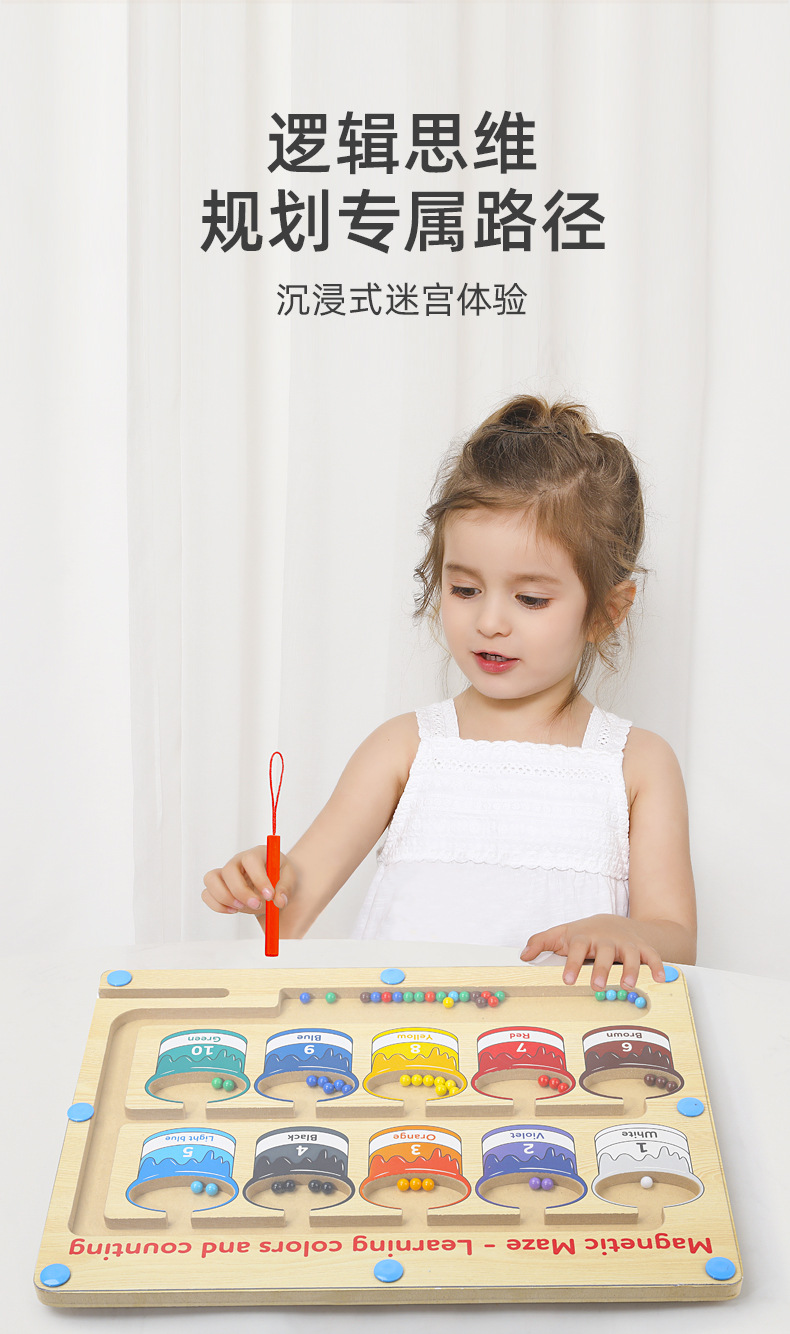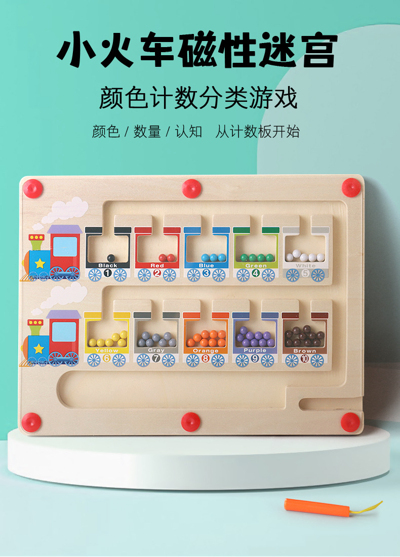 跨境儿童木质磁笔走珠迷宫磁性计数运算颜色分类游戏早教益智玩具