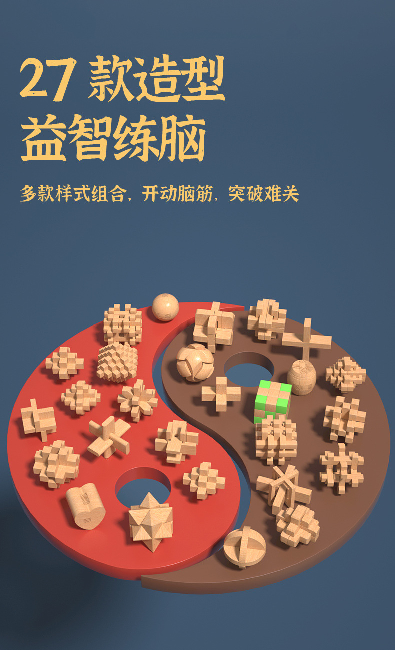 儿童木质古典益智解锁玩具孔明锁鲁班锁全套礼盒成人减压玩具批发