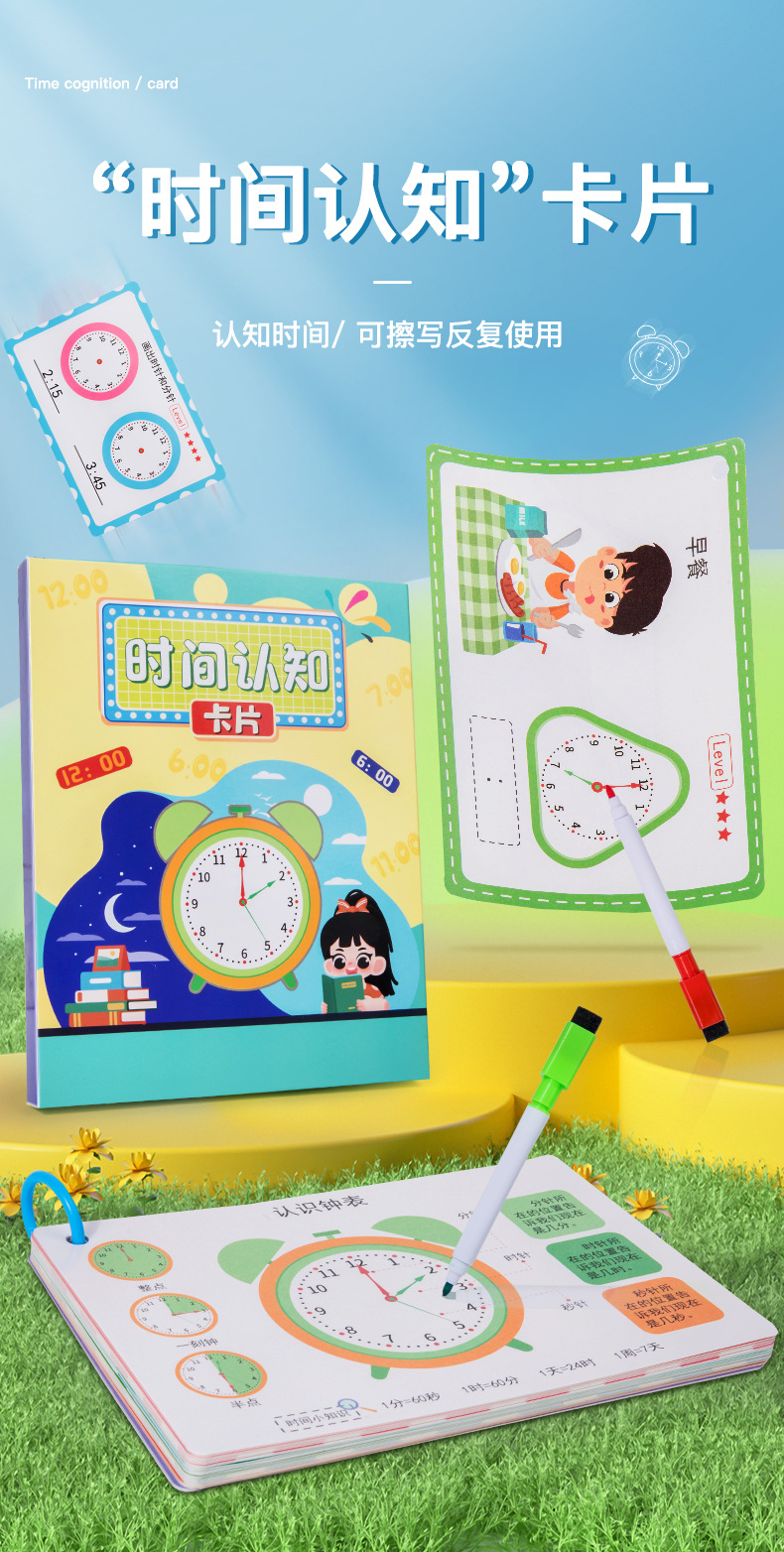 儿童早教控笔训练时间认知教具幼儿园宝宝专注力划消卡片益智玩具