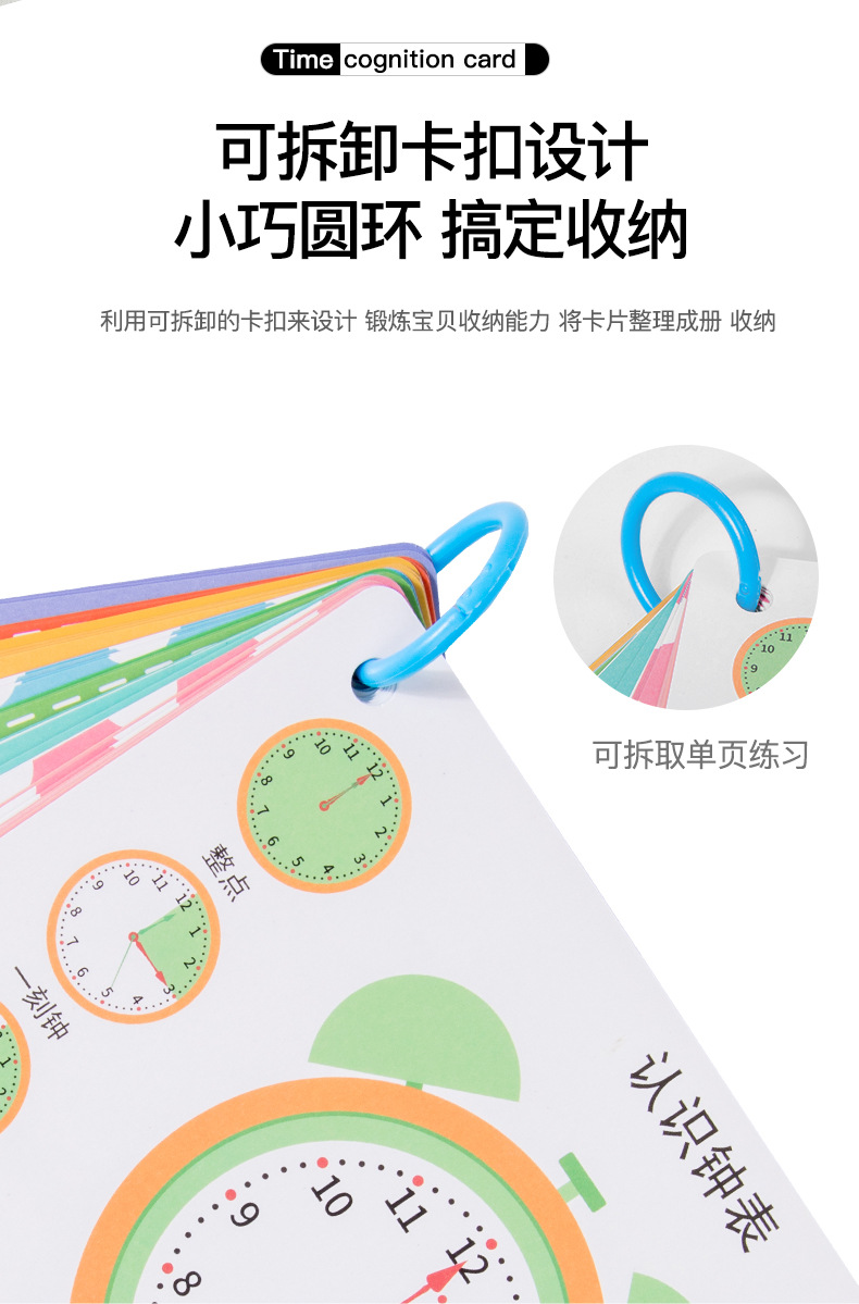 时间认知卡片:产品尺寸:16.7*21*1.7CM 装箱数:60个 装箱重量:17.5/17kg 外箱尺寸:52*43.5*19.5CM