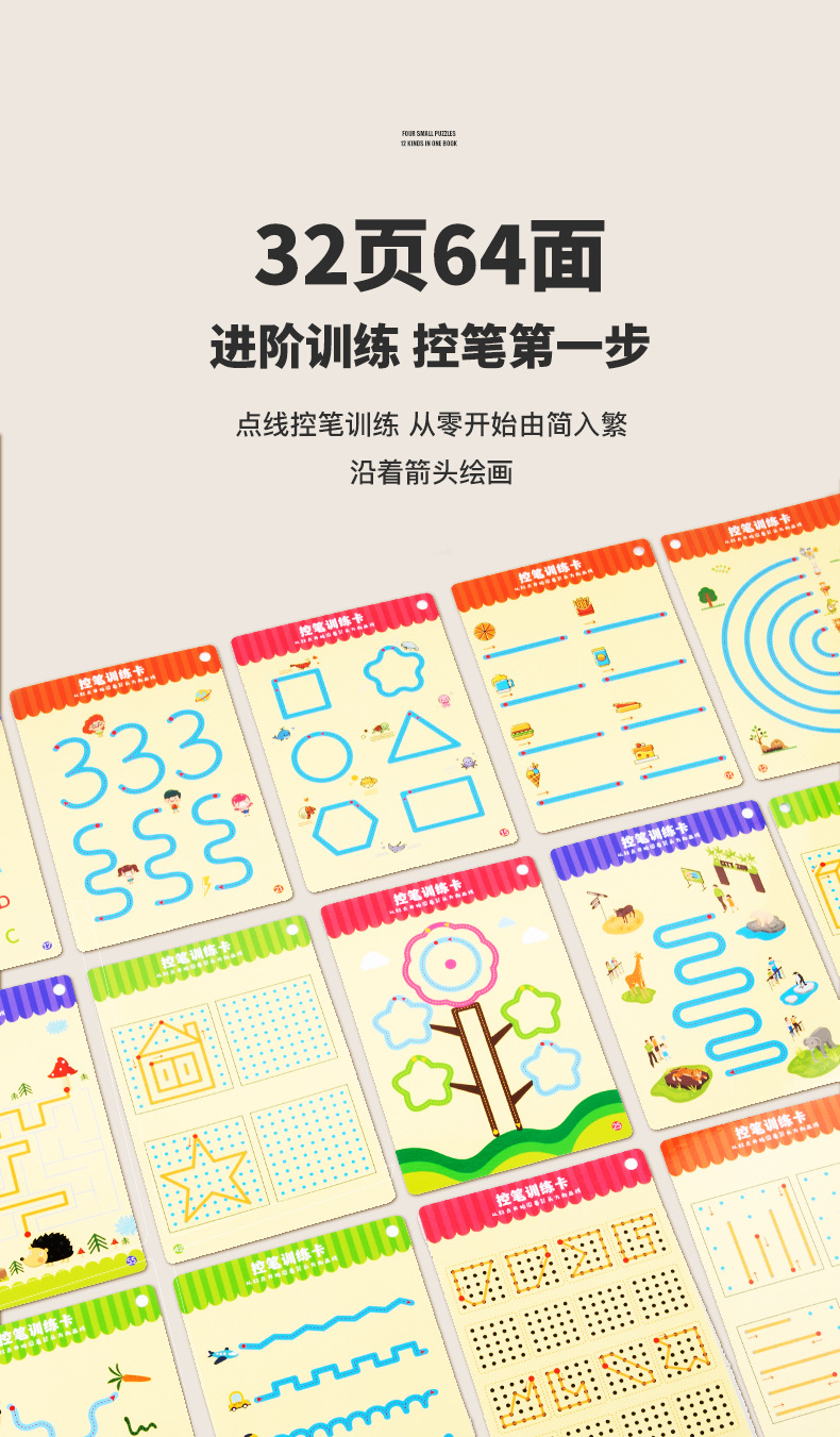 控笔训练卡片:产品尺寸:16.7*21*1.7CM 装箱数:60个 装箱重量:17.5/17kg 外箱尺寸:52*43.5*19.5CM