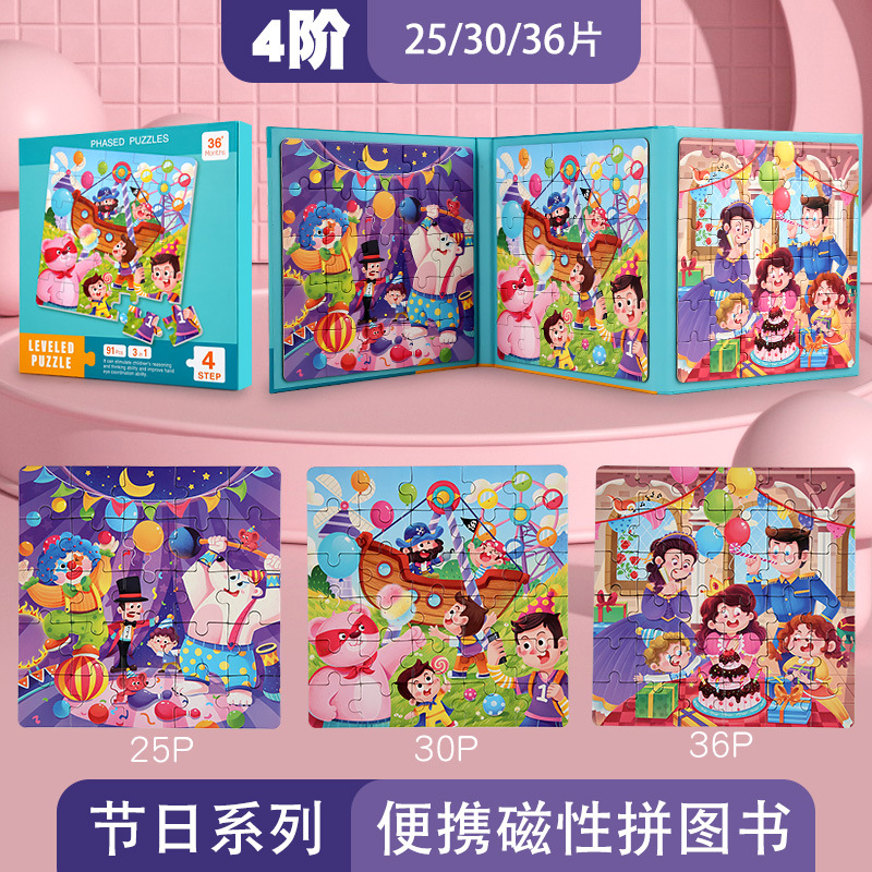 儿童启蒙早教磁性进阶拼图书幼儿园宝宝认知平面拼图智力开发玩具