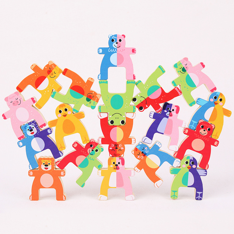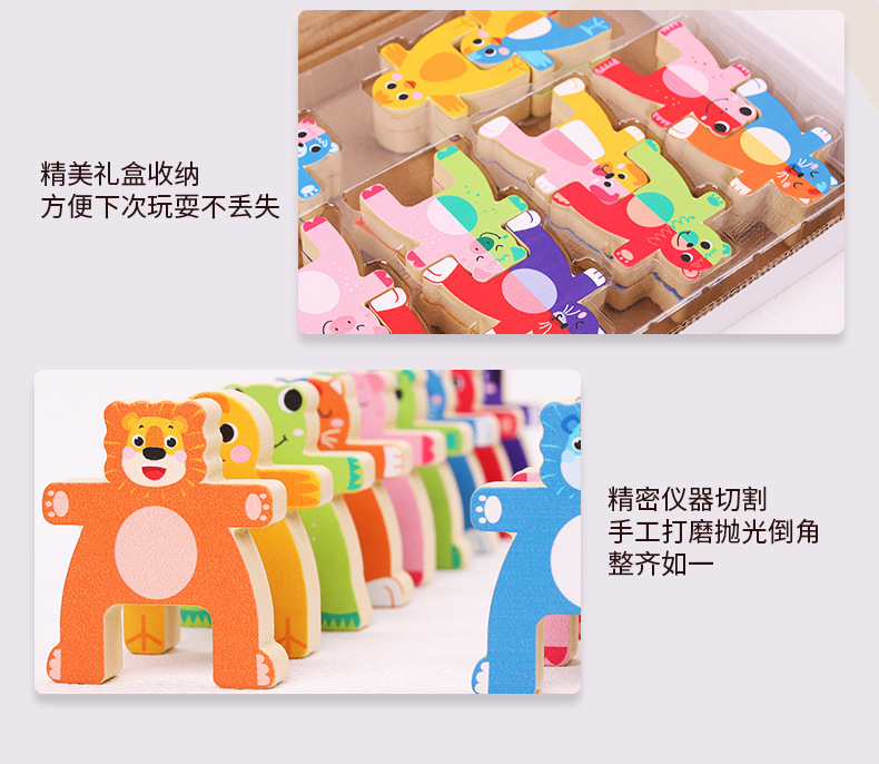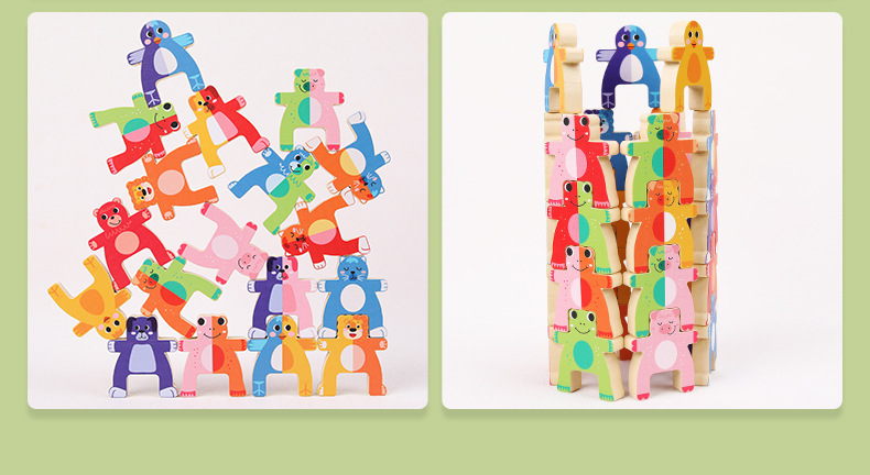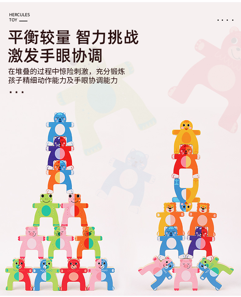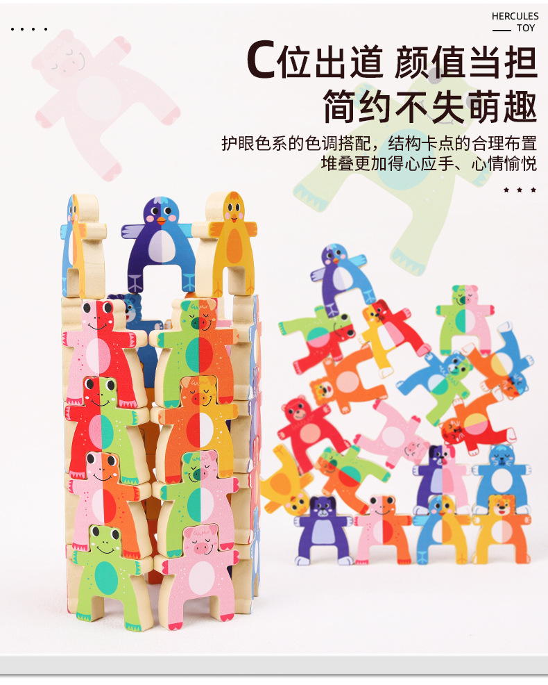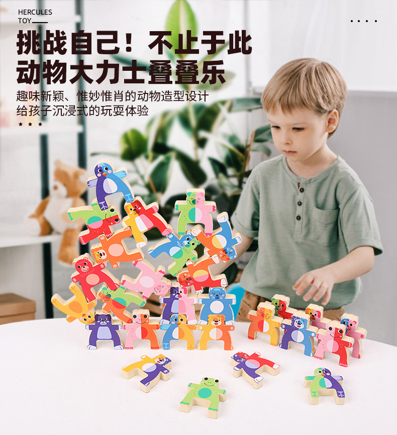 儿童木制动物大力士叠叠乐幼儿园宝宝拼搭平衡积木叠叠高益智玩具