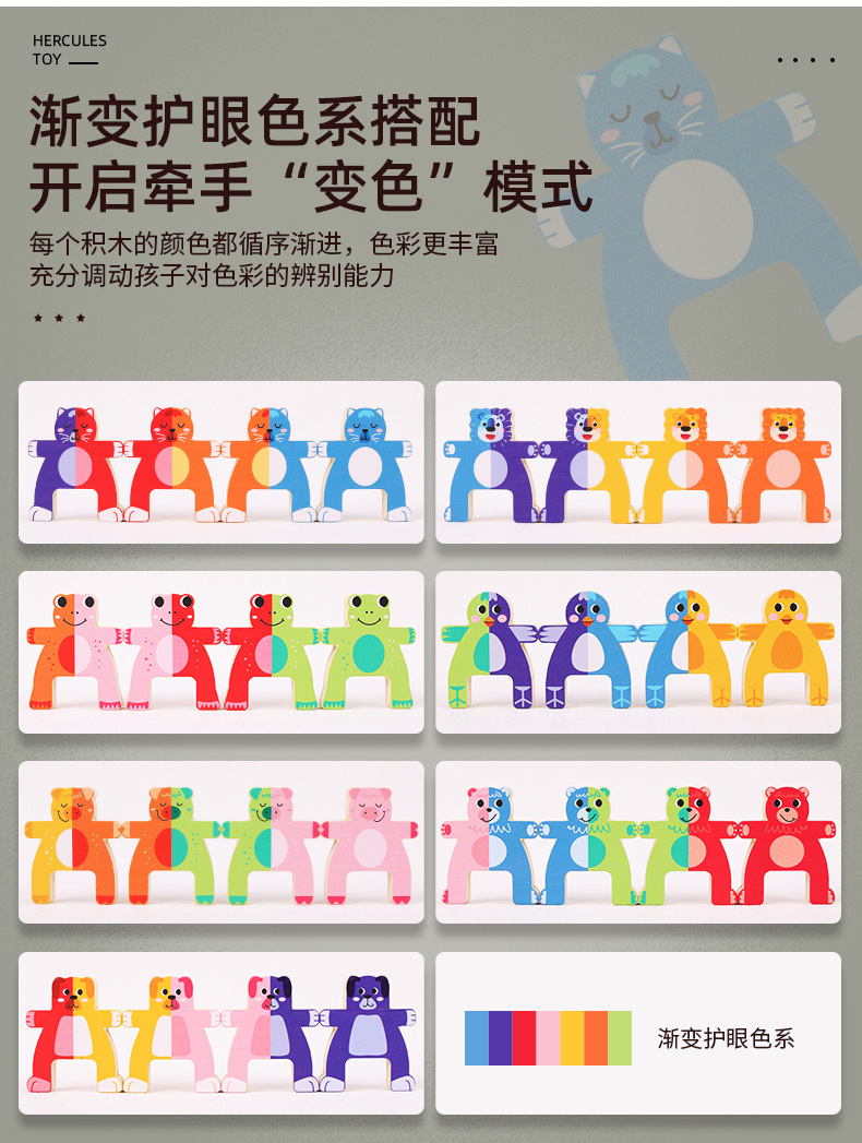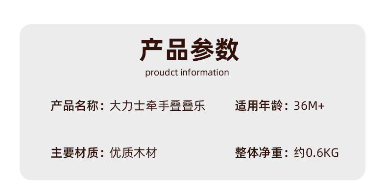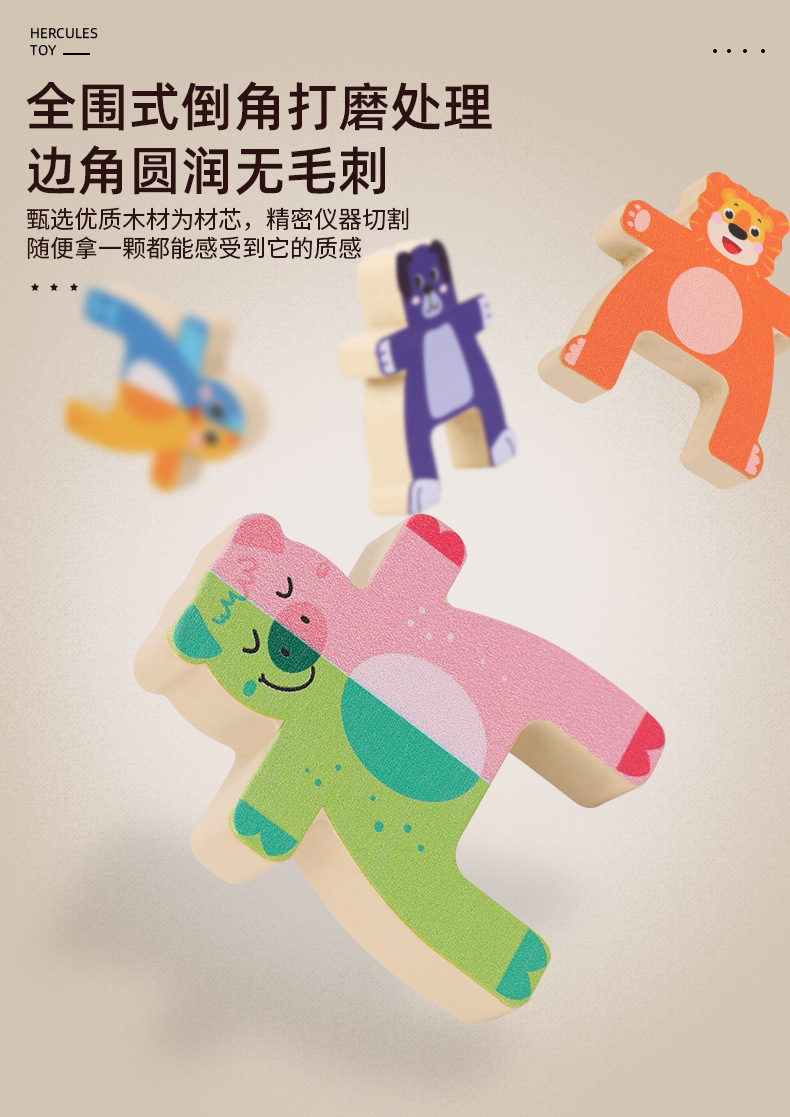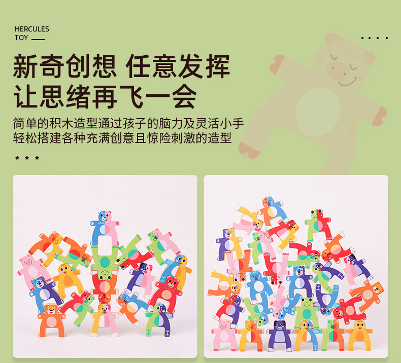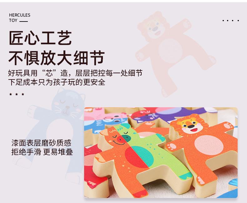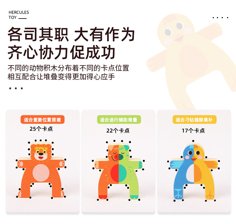 儿童木制动物大力士叠叠乐幼儿园宝宝拼搭平衡积木叠叠高益智玩具