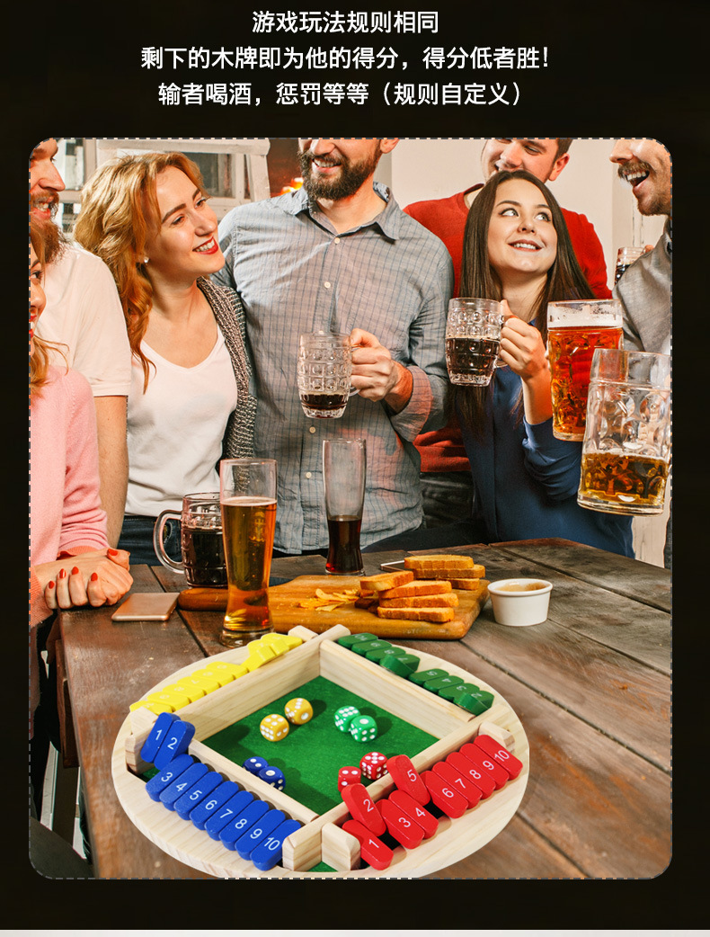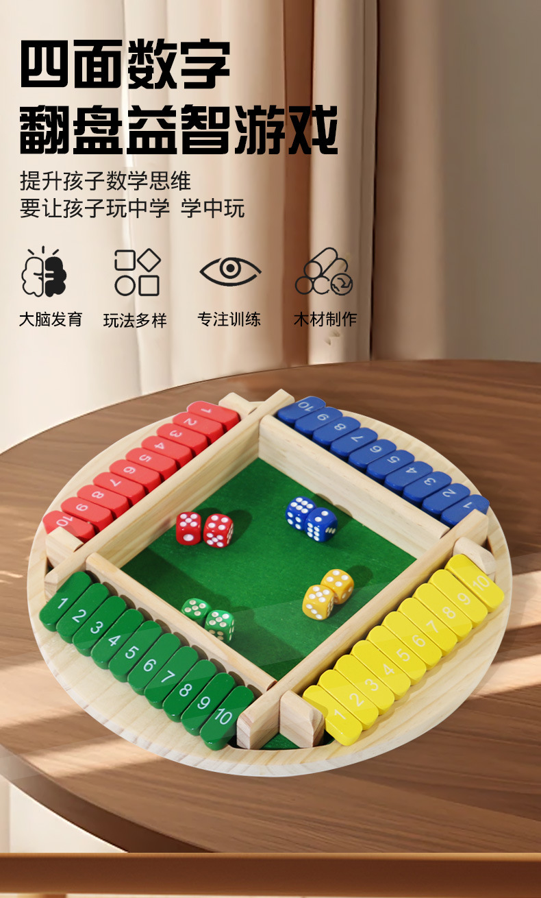 跨境双面数字四面翻牌游戏棋儿童亲子桌游酒吧聚会喝酒行酒令玩具