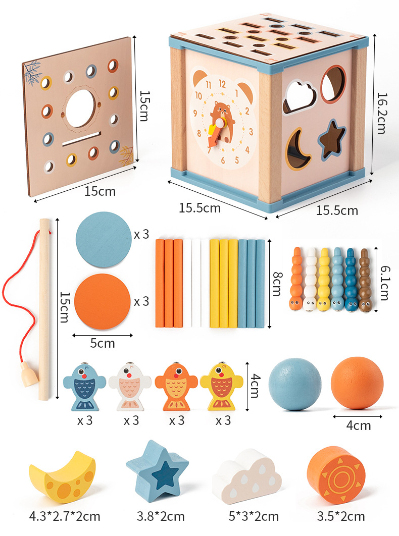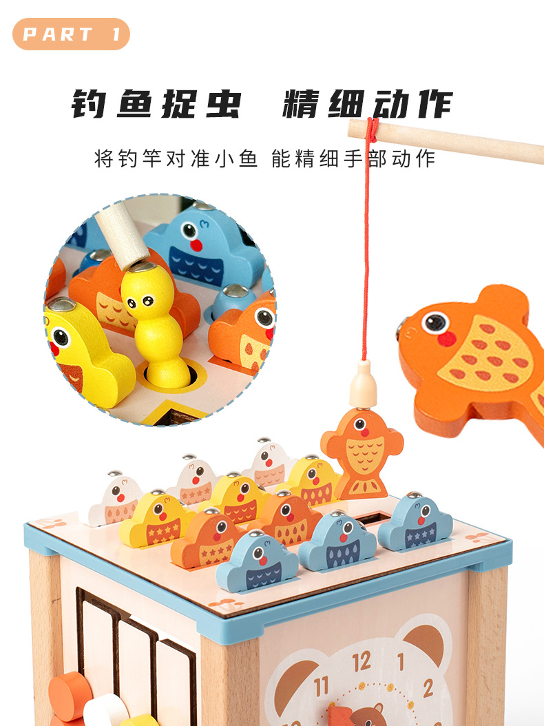 儿童蒙氏九合一投币盒多功能插棍钓鱼几何形状配对智力盒益智玩具