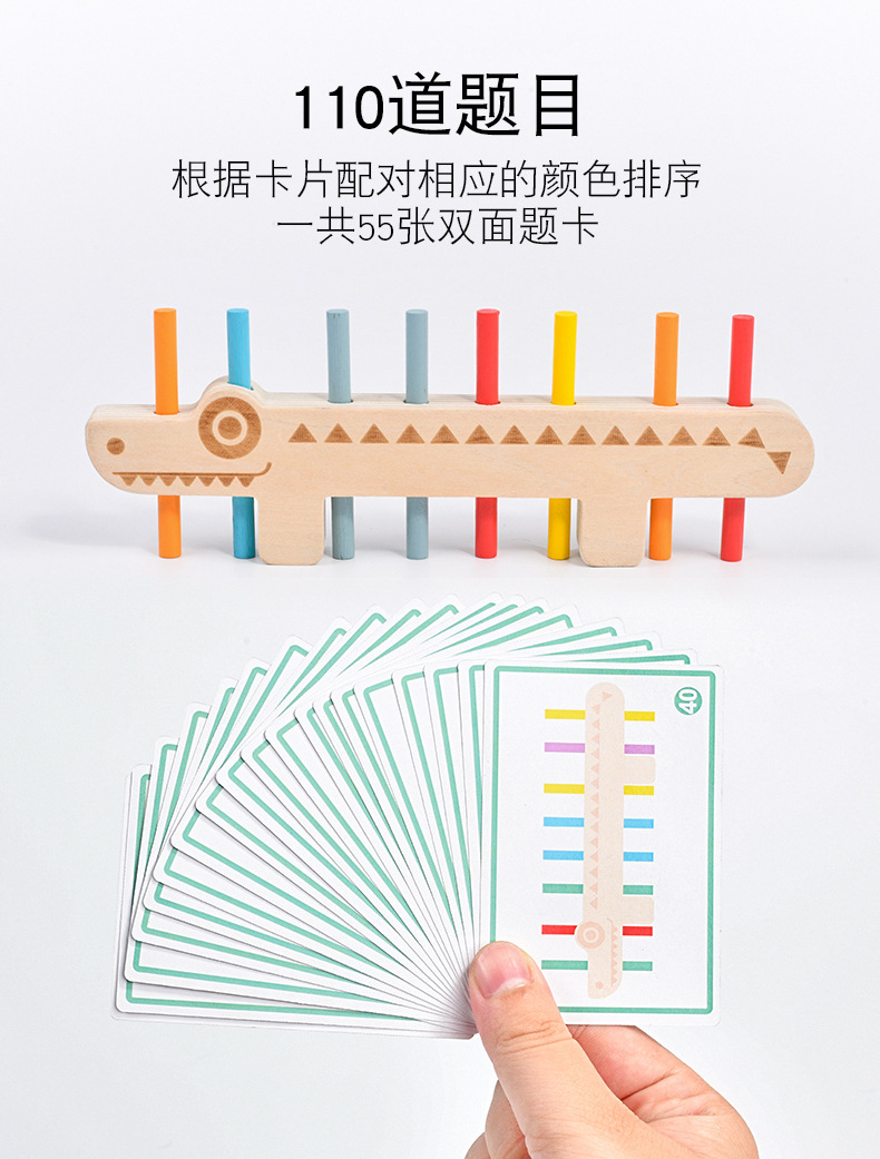 儿童蒙氏教具鳄鱼鱼骨配对颜色认知精细动作训练木质早教益智玩具