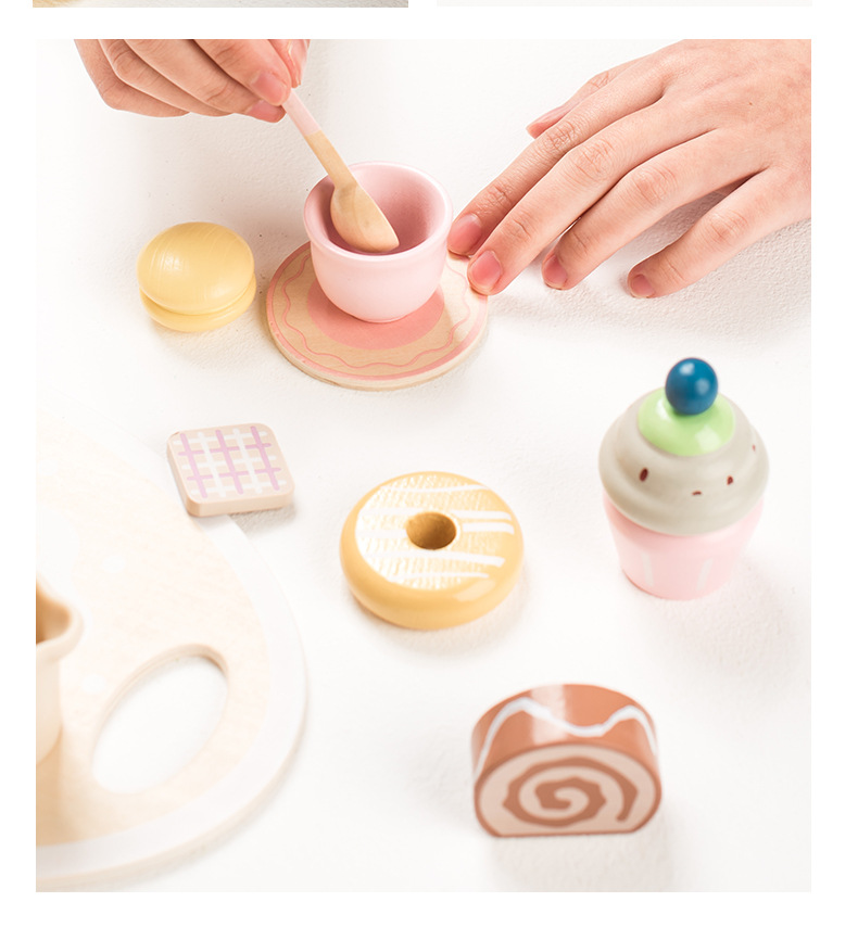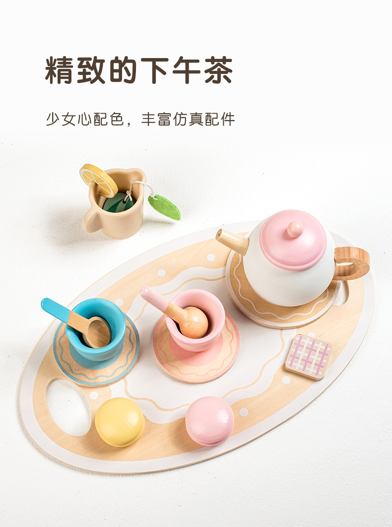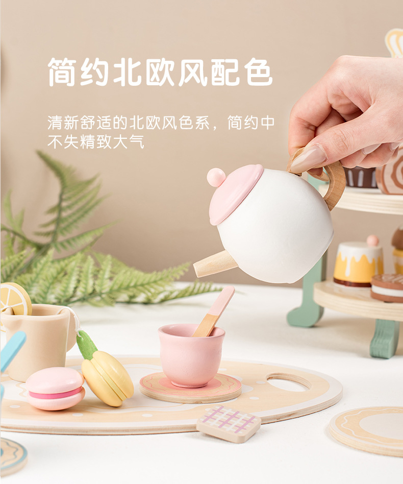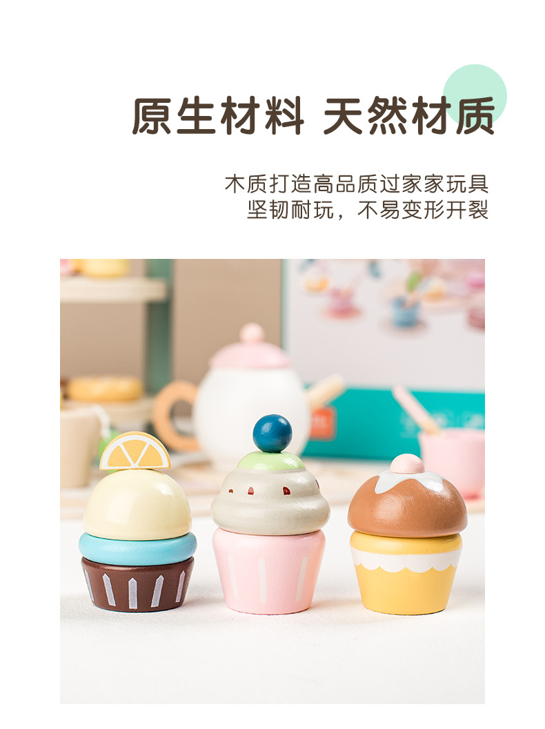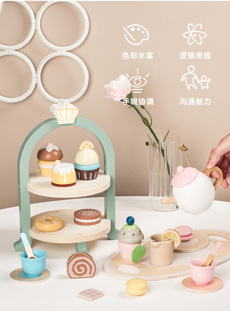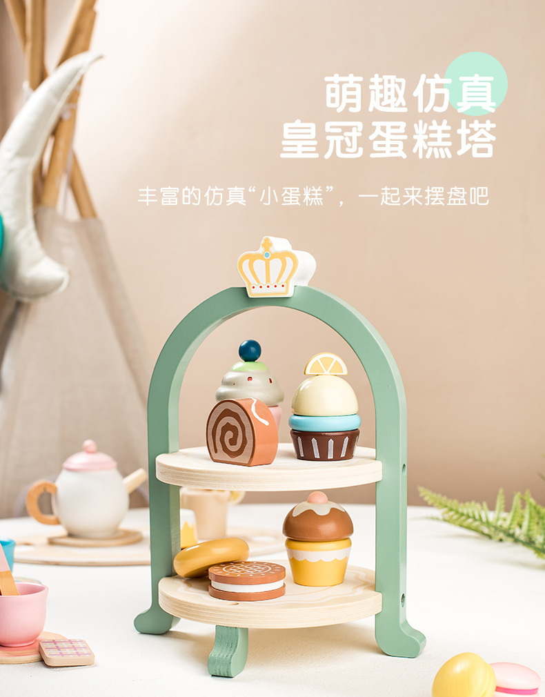 儿童早教仿真皇冠下午茶游戏过家家甜品蛋糕点心茶具套装木质玩具