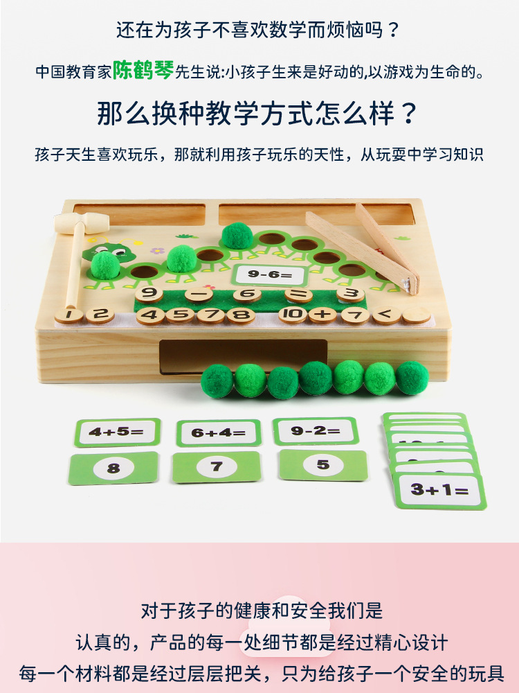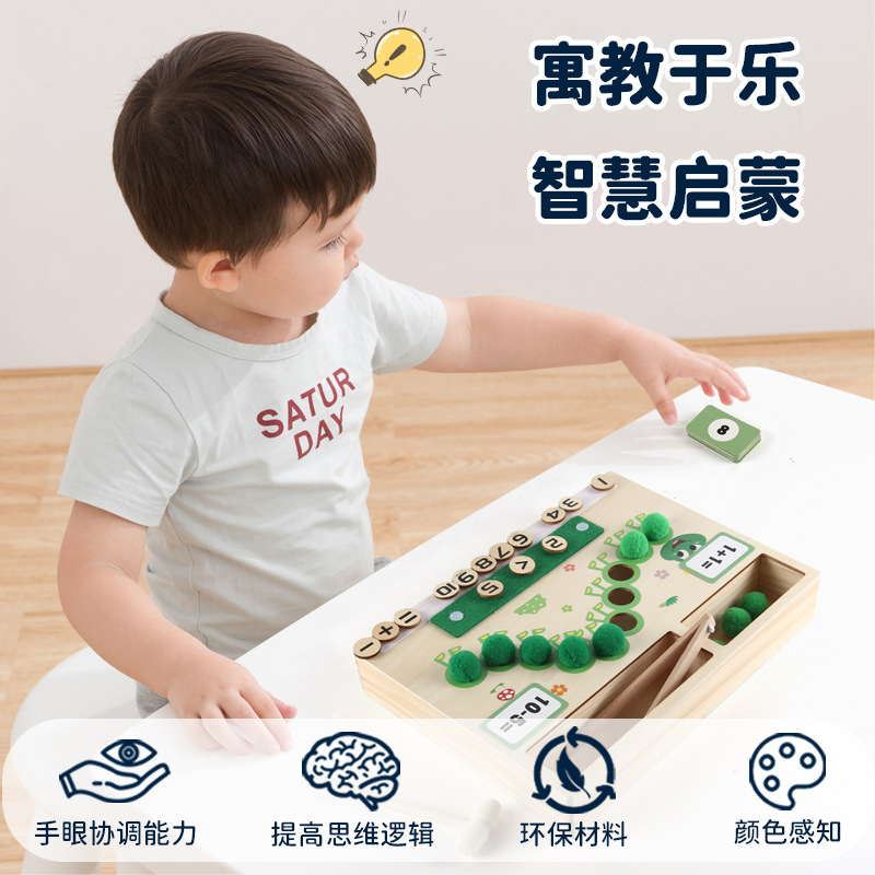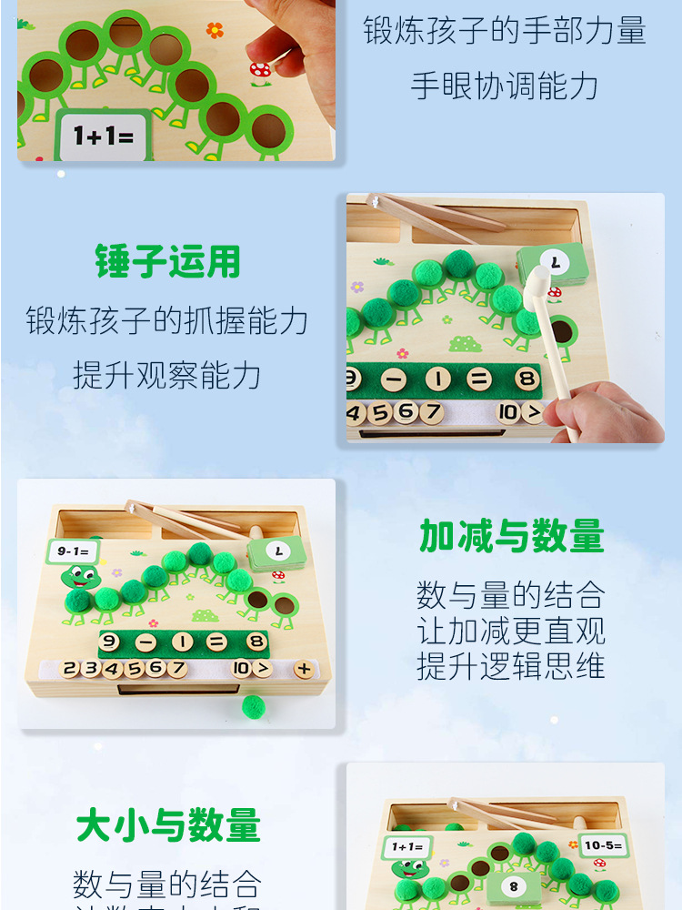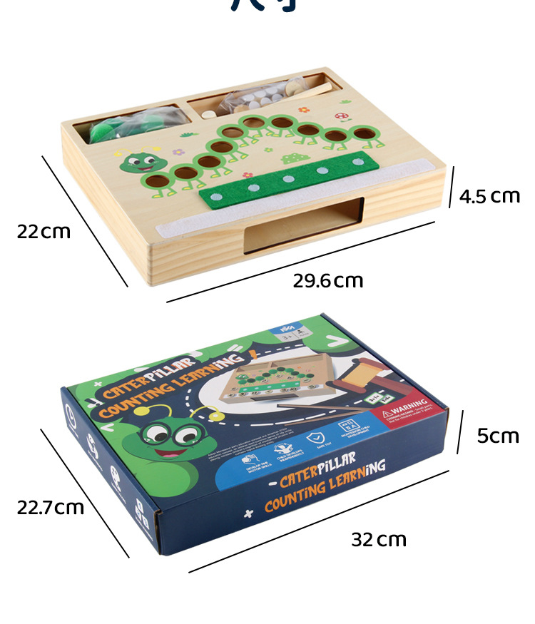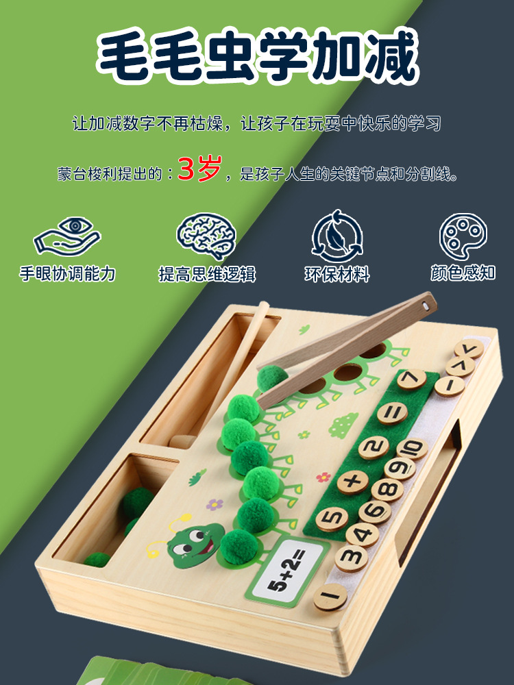 儿童木制毛毛虫加减法教具启蒙游戏盒子宝宝智力开发早教益智玩具
