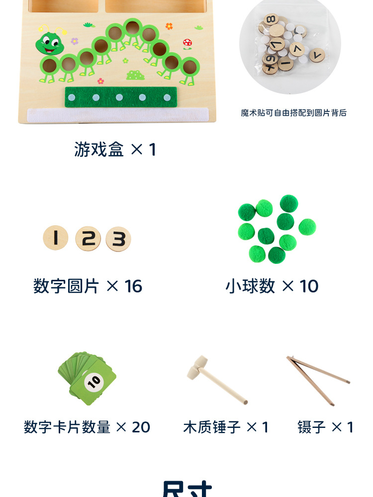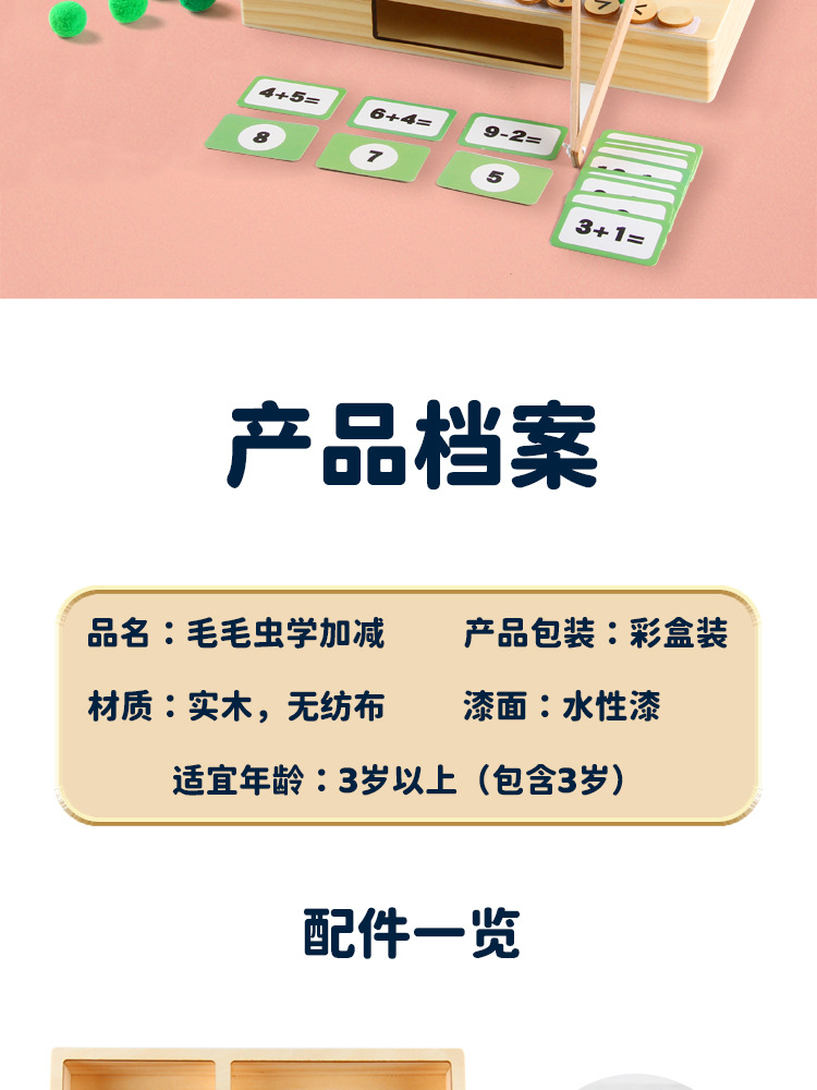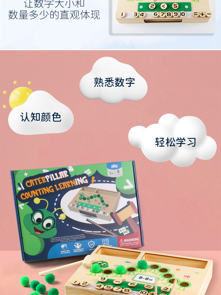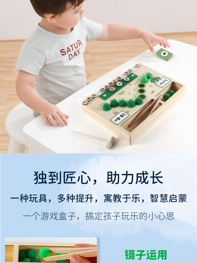 儿童木制毛毛虫加减法教具启蒙游戏盒子宝宝智力开发早教益智玩具