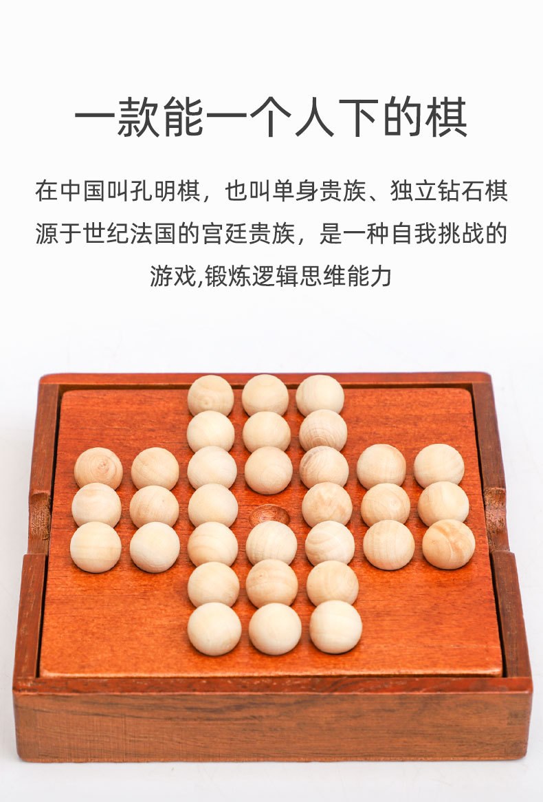 儿童木制独立单身贵族棋益智力桌面游戏古典孔明棋单人棋玩具批发