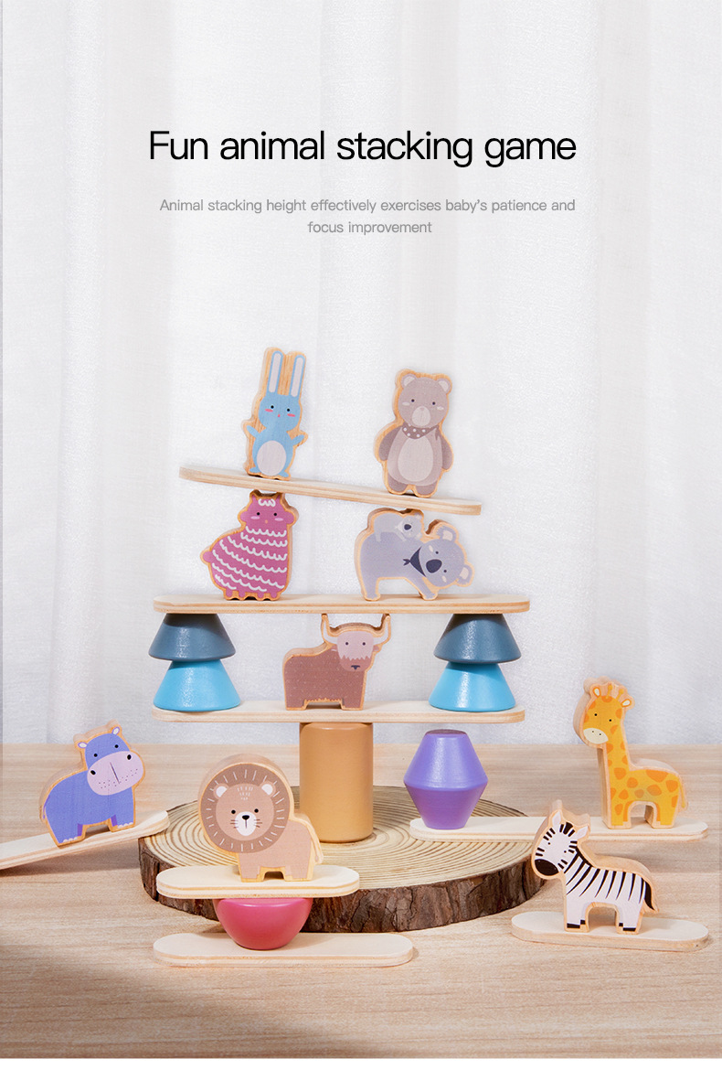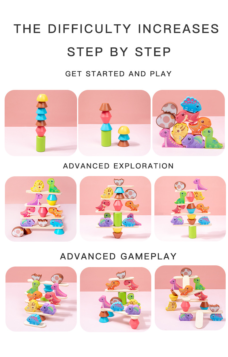 跨境儿童木制恐龙动物叠叠高积木拼搭平衡叠叠乐早教益智玩具批发