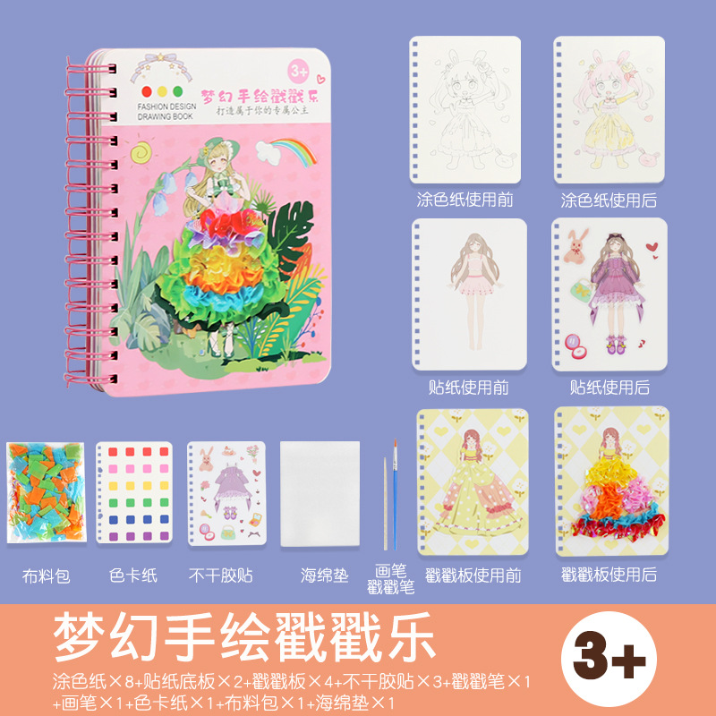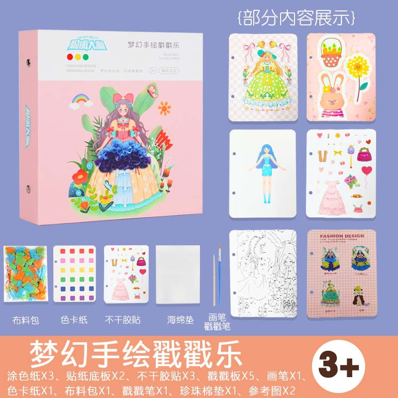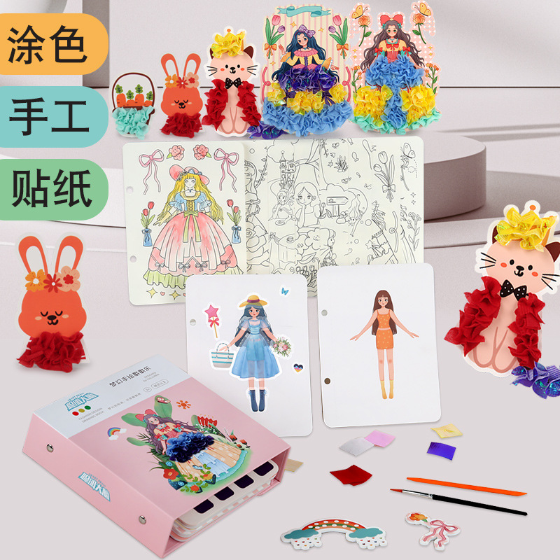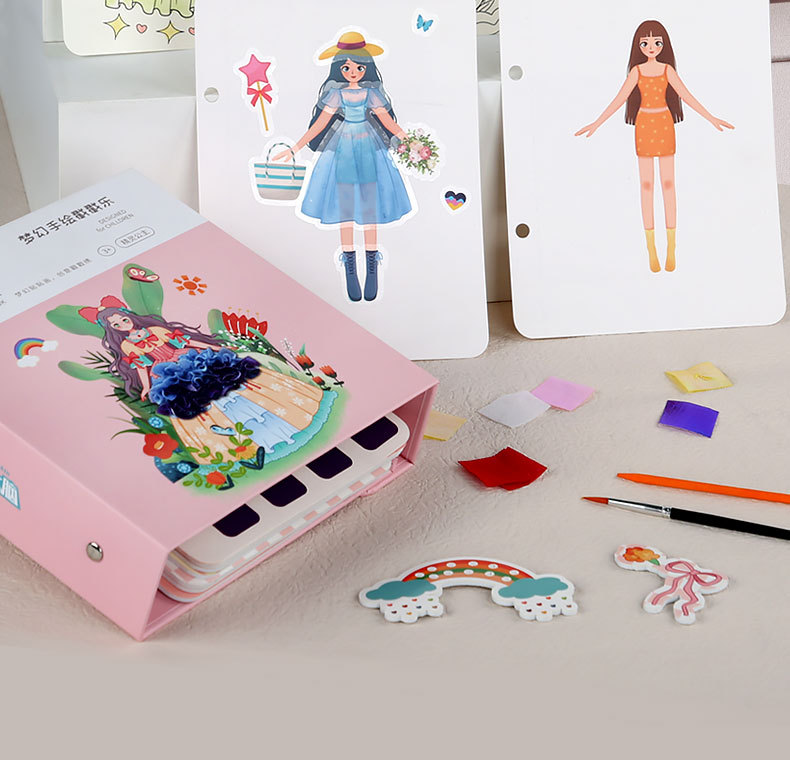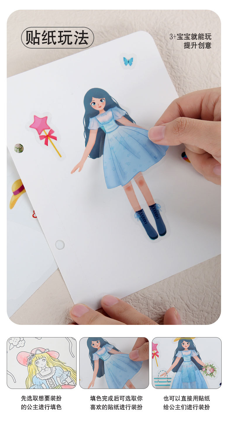 梦幻手绘公主戳戳乐换装贴纸书本女孩粘贴画涂色儿童diy手工玩具