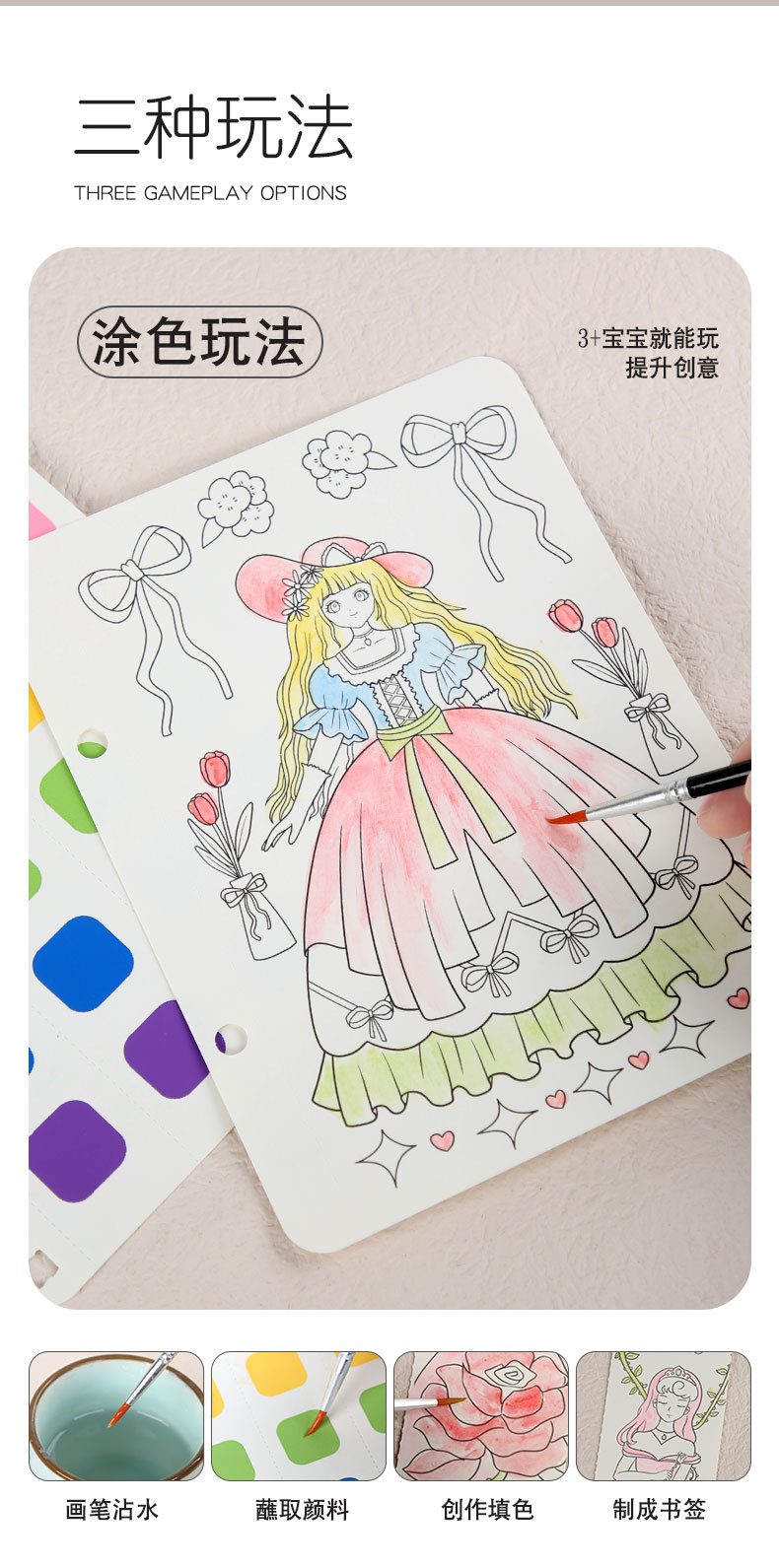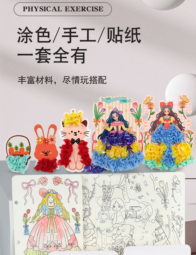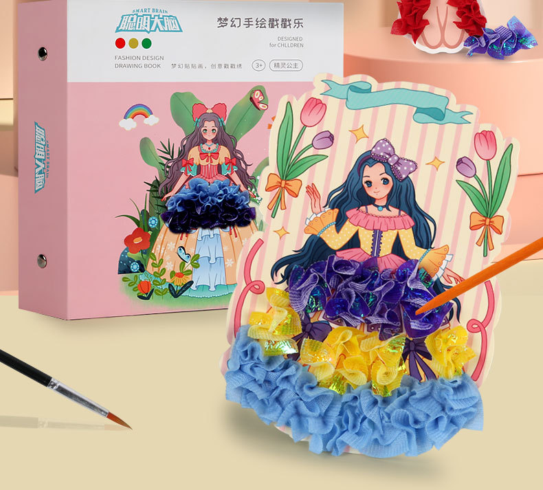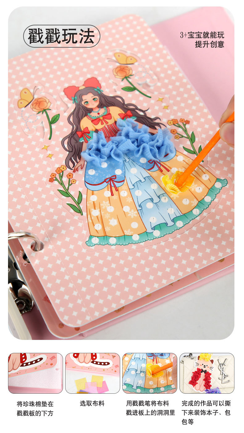 梦幻手绘公主戳戳乐换装贴纸书本女孩粘贴画涂色儿童diy手工玩具