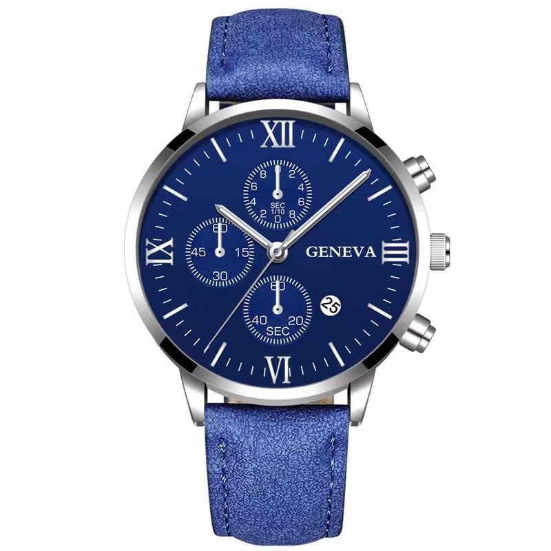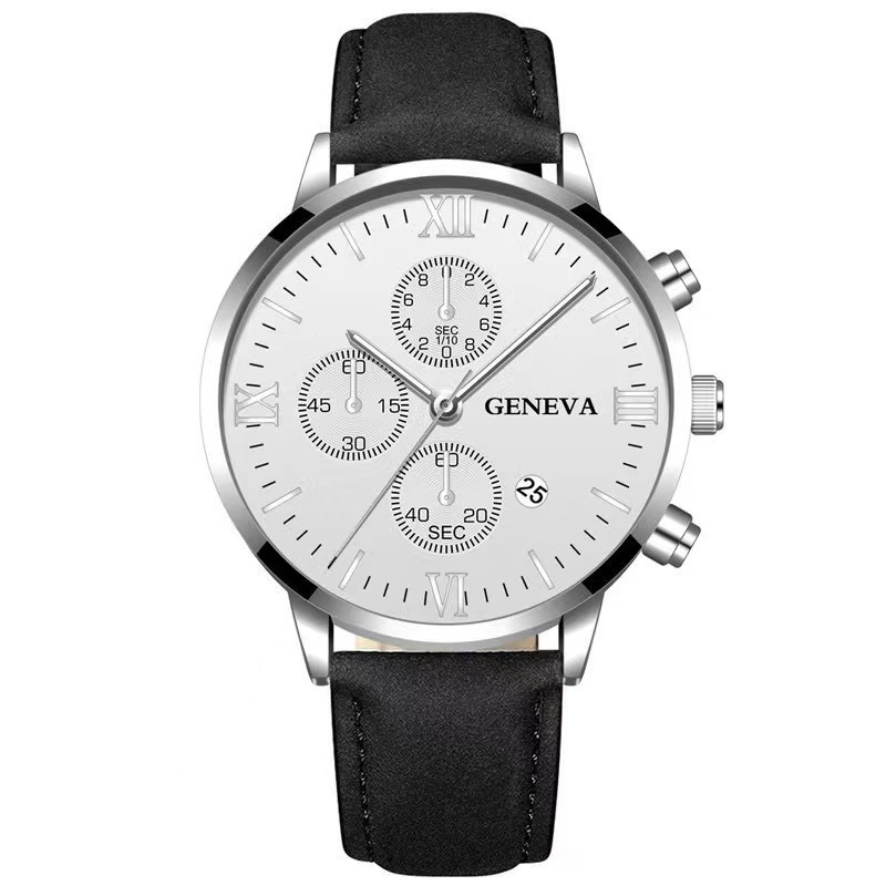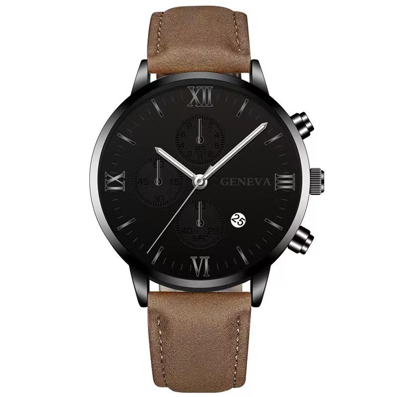 外贸热销新款商务手表 男士休闲日内瓦石英表男日历皮带手表批发