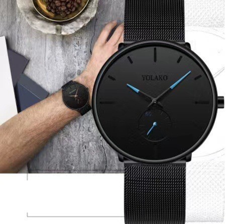跨境新款爆款超薄男士石英网带石英手表简约薄手表时尚流行男士表
