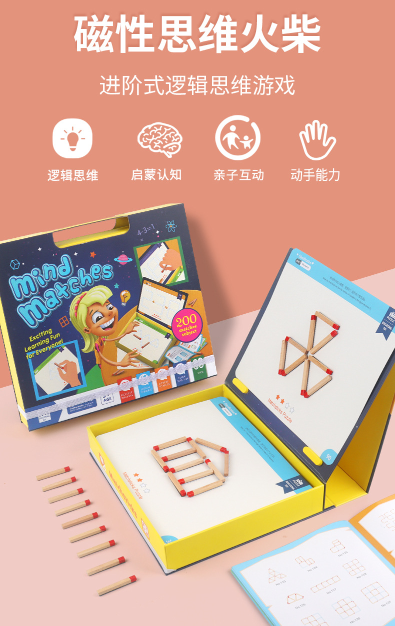 儿童早教木制磁性磁力思维火柴游戏奥数几何思维逻辑训练益智玩具