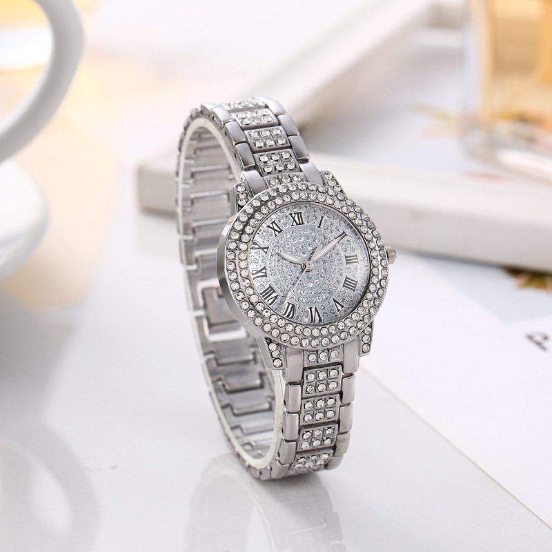 2023满天星女士满钻钢带石英表 珠光宝气亮闪闪罗马数字时装手表