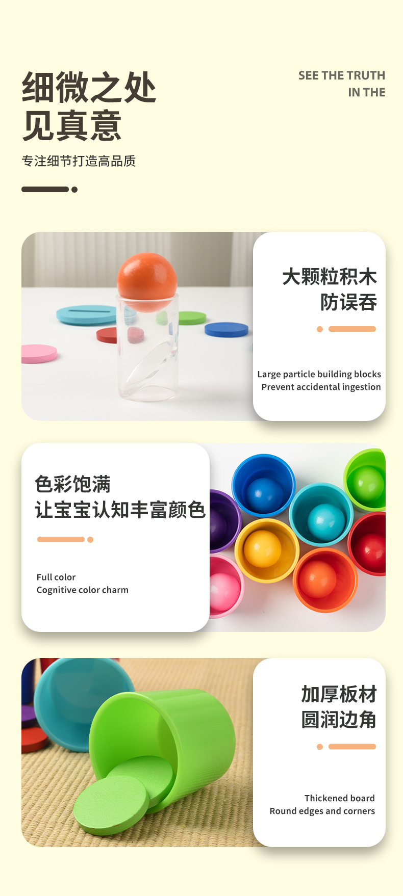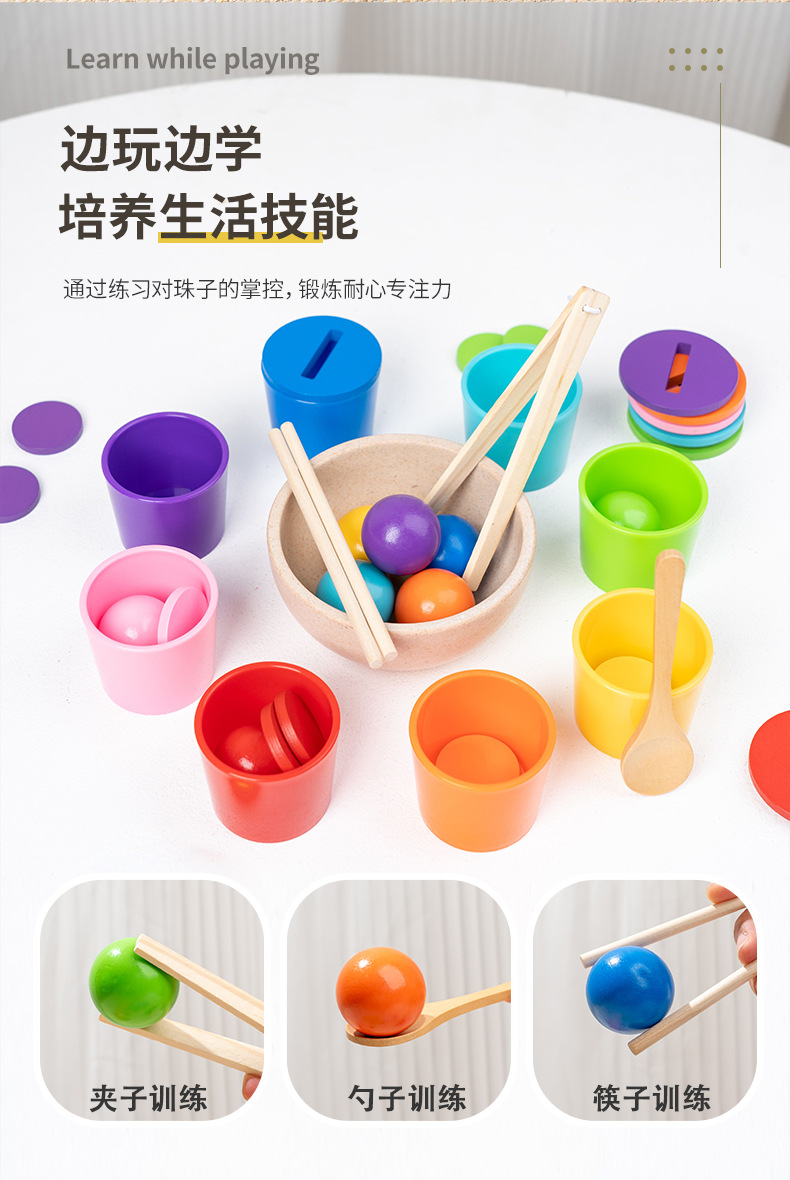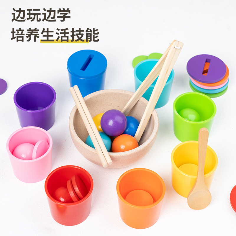 儿童蒙氏早教颜色认知配对杯精细动作训练球与杯颜色分类益智玩具