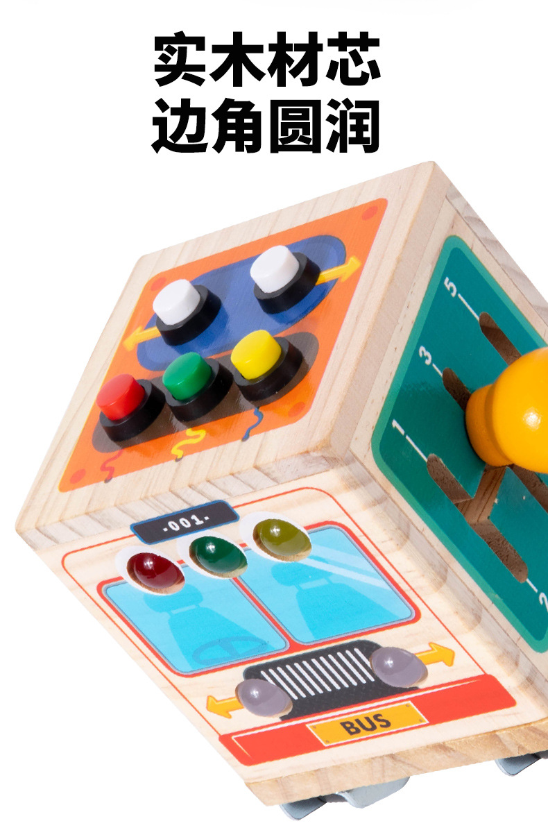 跨境木质LED电子开关灯忙碌公交车儿童早教忙碌板六面体益智玩具