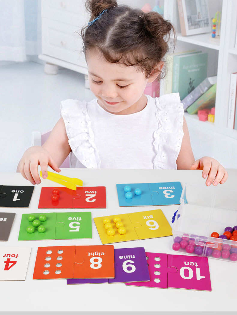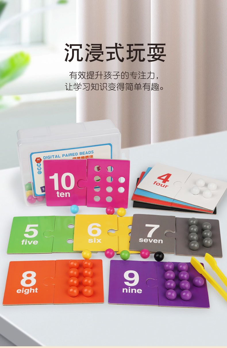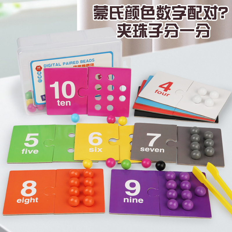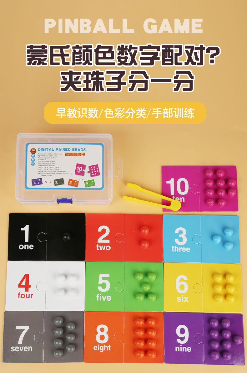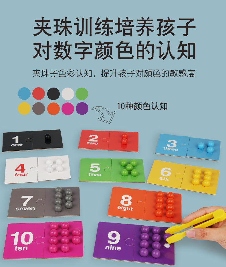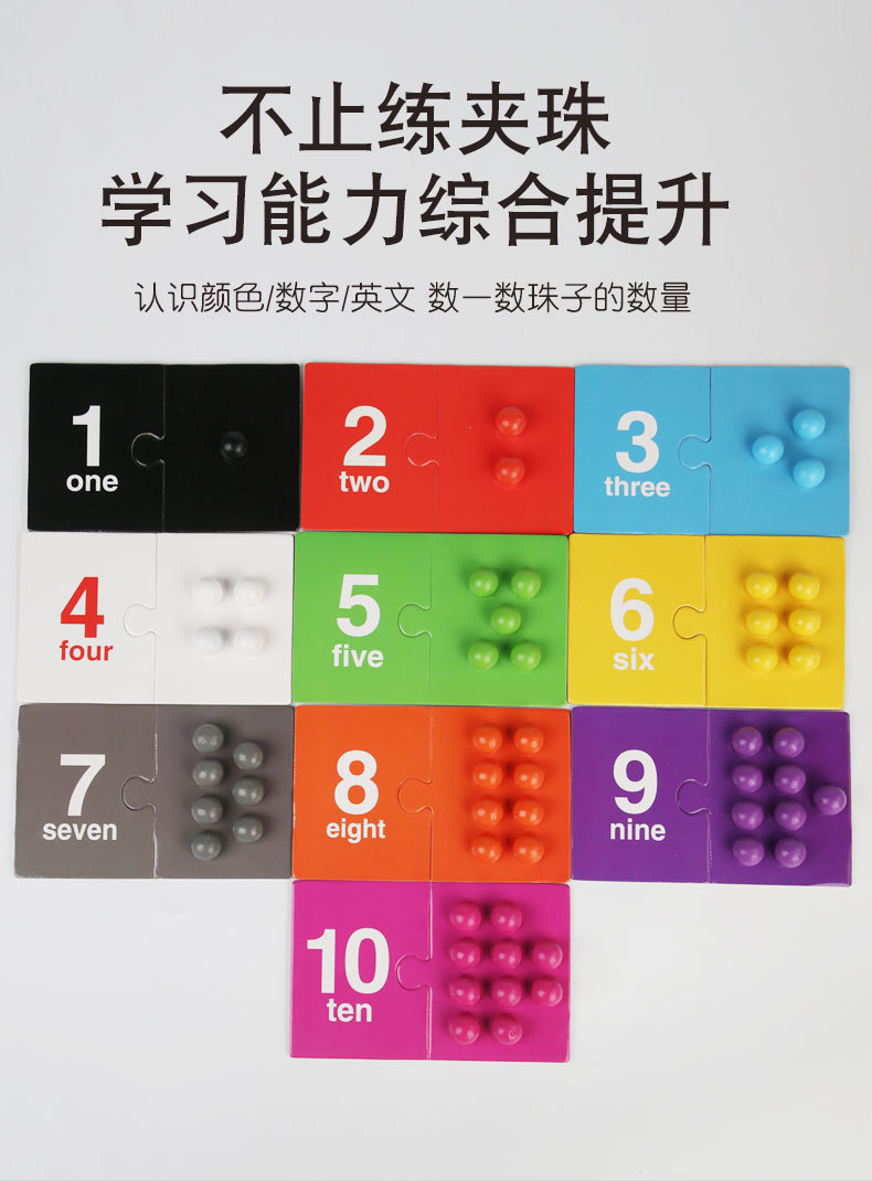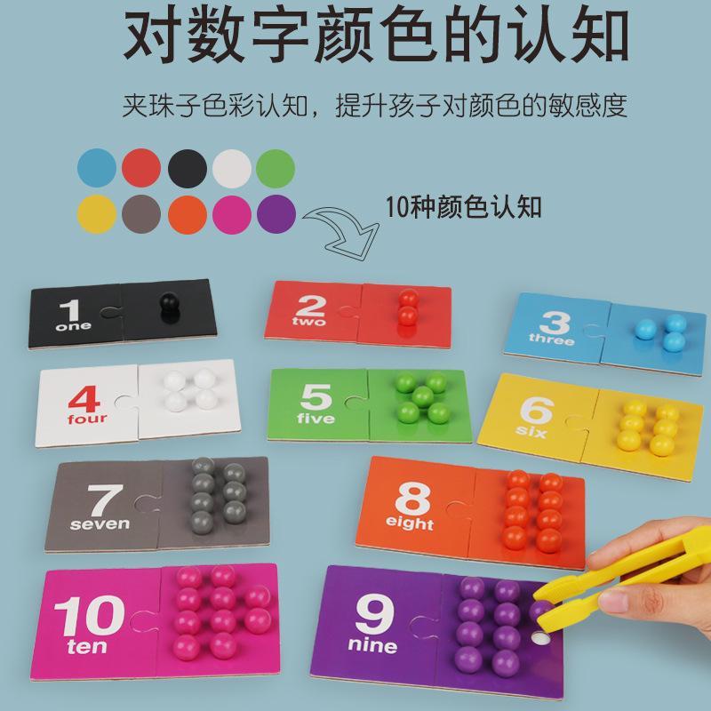 儿童蒙氏早教数字配对夹珠子游戏幼儿园宝宝颜色分类认知益智玩具