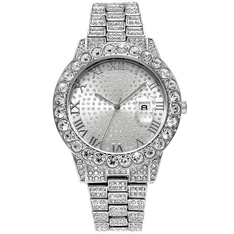 跨境爆款欧美满天星腕表时尚男士手表表潮人日历石英表镶钻手表