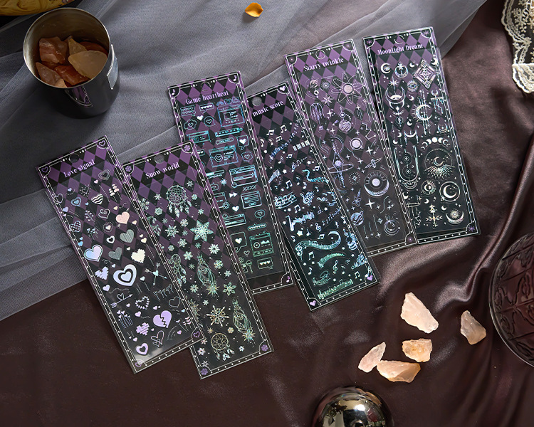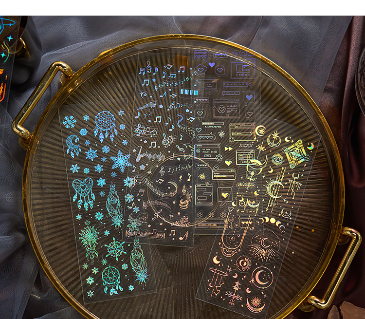 早沫PET贴纸 流光之城系列 立体镭射烫金咕卡手帐diy边框装饰拼贴