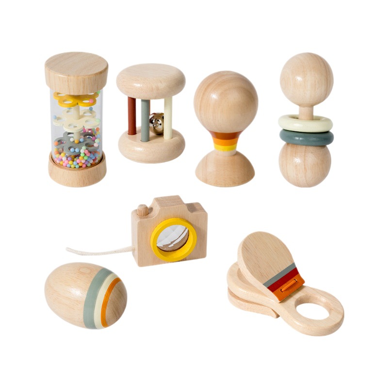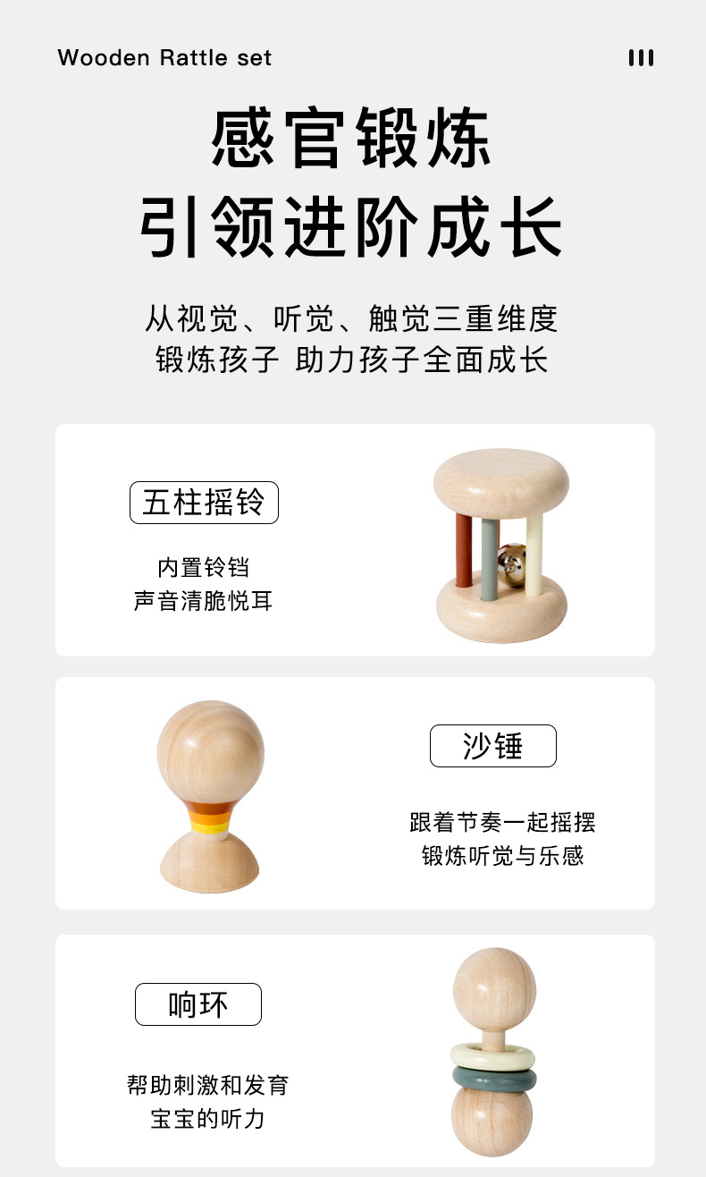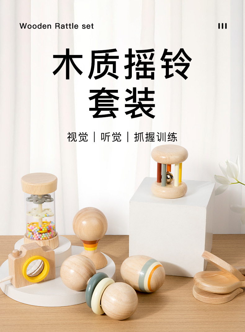 儿童木制安抚手摇铃婴幼儿感统早教乐器套装宝宝抓握训练益智玩具